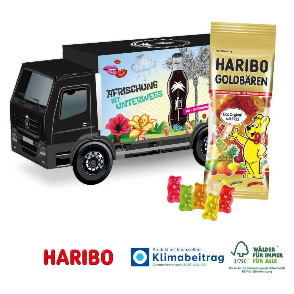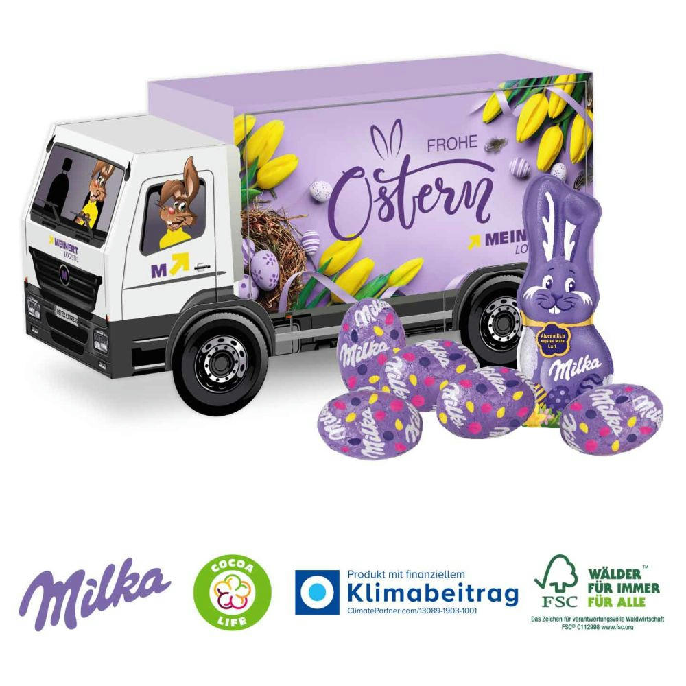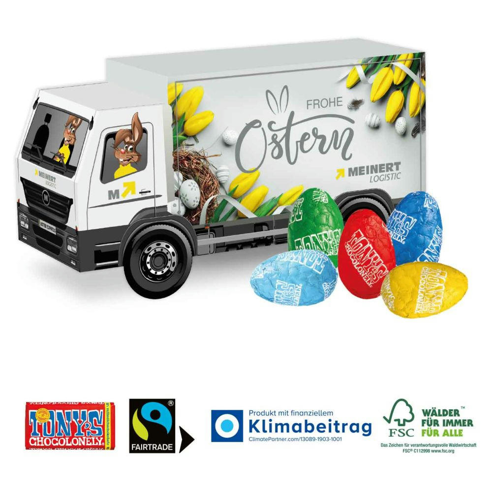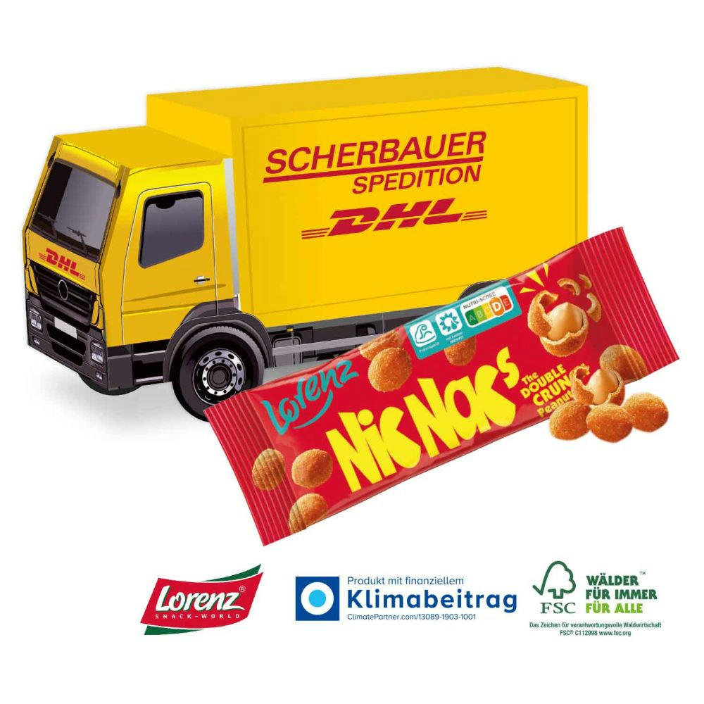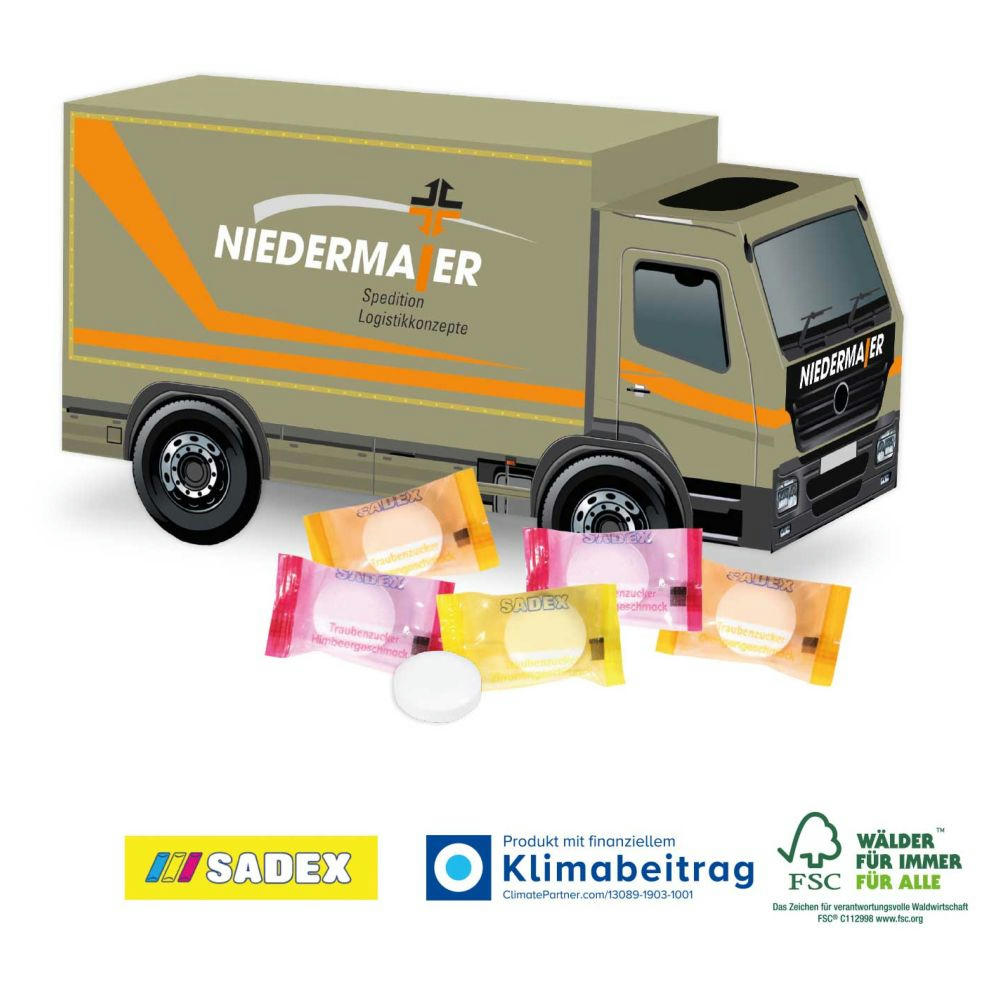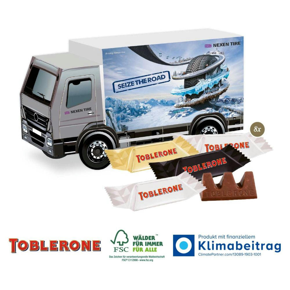 Beliebtes Firmenpräsent zum attraktiven Preis! Die beliebten 3D-Modelle „LKW“ oder „Transporter“ sind individuell in Ihrem Firmendesign bedruckbar. Eine Füllung mit feinster Markenschokolade sorgt für himmlische Genussmomente. Dieses Firmenpräsent findet bestimmt einen Ehrenplatz in den Büros Ihrer Kunden und Mitarbeiter. Produktdetails: Individuelle Präsentverpackung aus hochwertiger Kartonage mit süßer Füllung. Das Lindt & Sprüngli Farming-Programm steht für nachhaltige Kakaobohnen-Beschaffung (www.farming-program.com). // Inhalt: 12 Stück Lindt Minis (ca. 55 g) und ein zartschmelzender Lindt Weihnachtsmann (10 g). Geschmacksrichtungen bunt gemischt