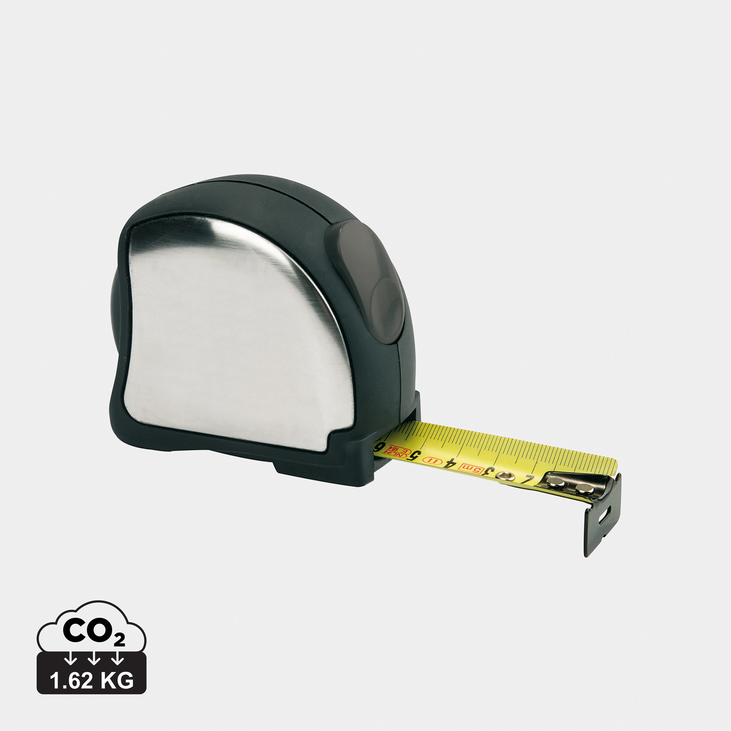 Edelstahlmaßband mit Griffigkeit durch Weichgummi. Metrisch, mit Stopper und Gürtelclip.