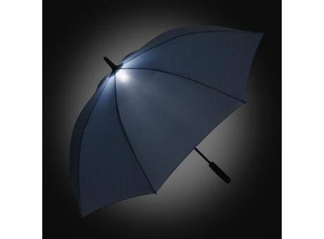 Effektvoller Automatik-Stockschirm in mittlerer Größe mit LED-Innenbeleuchtung. Komfortable Automatik-Funktion zum schnellen Öffnen, hochwertiges Windproof-PLUS-System für eine maximale Gestell-Flexibilität bei stärkeren Windböen, flexible Fiberglasschienen, Soft-Feel-Griff mit integrierter Auslösetaste, Taste zum Ausschalten des Lichts und Werbeanbringungsmöglichkeit, höherer Korrosionsschutz durch schwarze Galvanisierung des Stahlstocks, WEEE-Reg.-Nr. DE 14360689, Batt-Reg.-Nr. DE 52803080, Batterien (3 x AAA) im Lieferumfang enthalten.