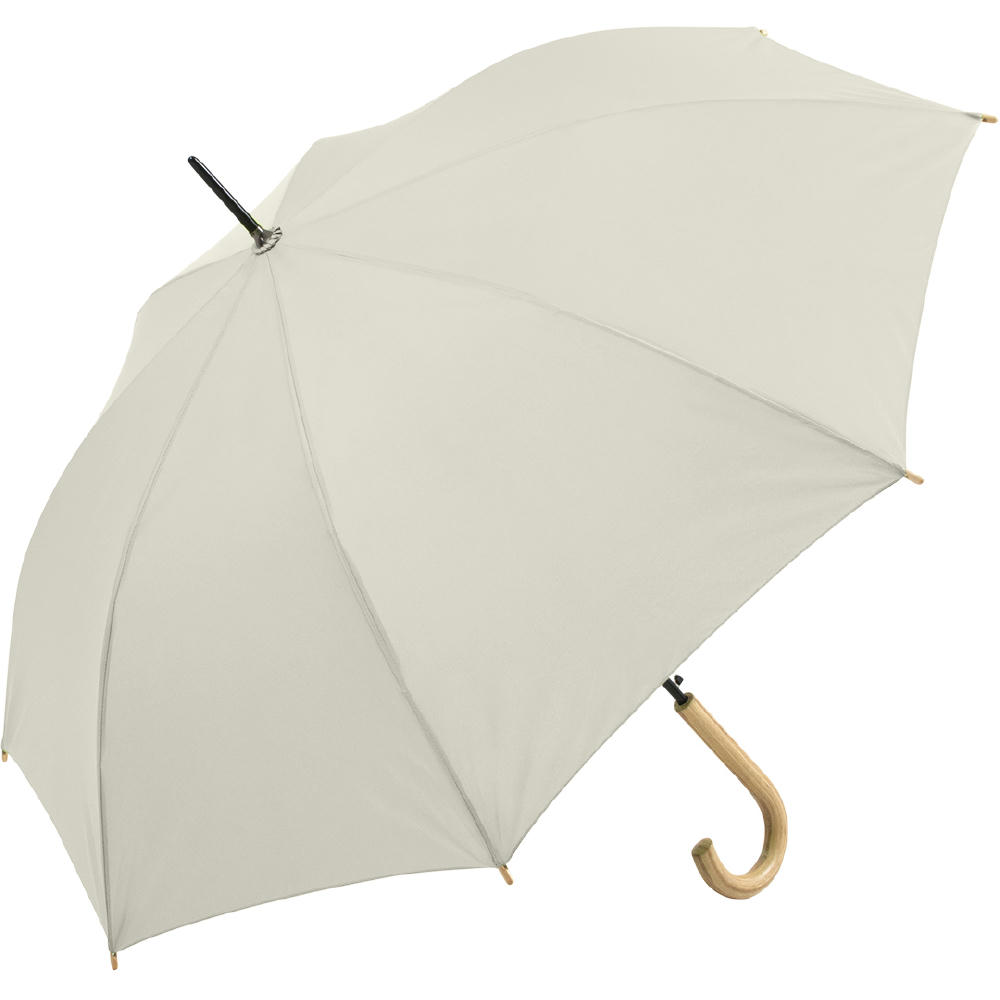 Komfortable Automatik-Funktion zum schnellen Öffnen, Windproof-Features für höhere Gestell-Flexibilität und bessere Windsicherheit, flexible Fiberglasschienen, wassersparend gefärbtes Polyester-Pongee waterSAVE® Bezugsmaterial aus recycelten Kunststoffen, Echtholzspitzen, Rundhakengriff aus Echtholz, höherer Korrosionsschutz durch schwarze Galvanisierung des Stahlstocks