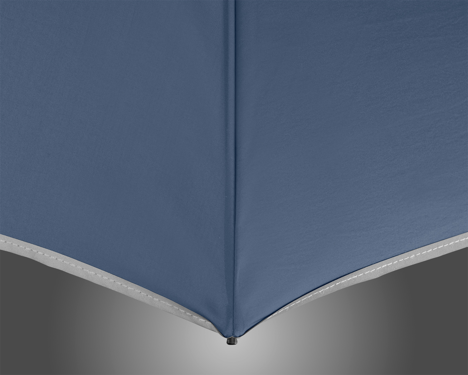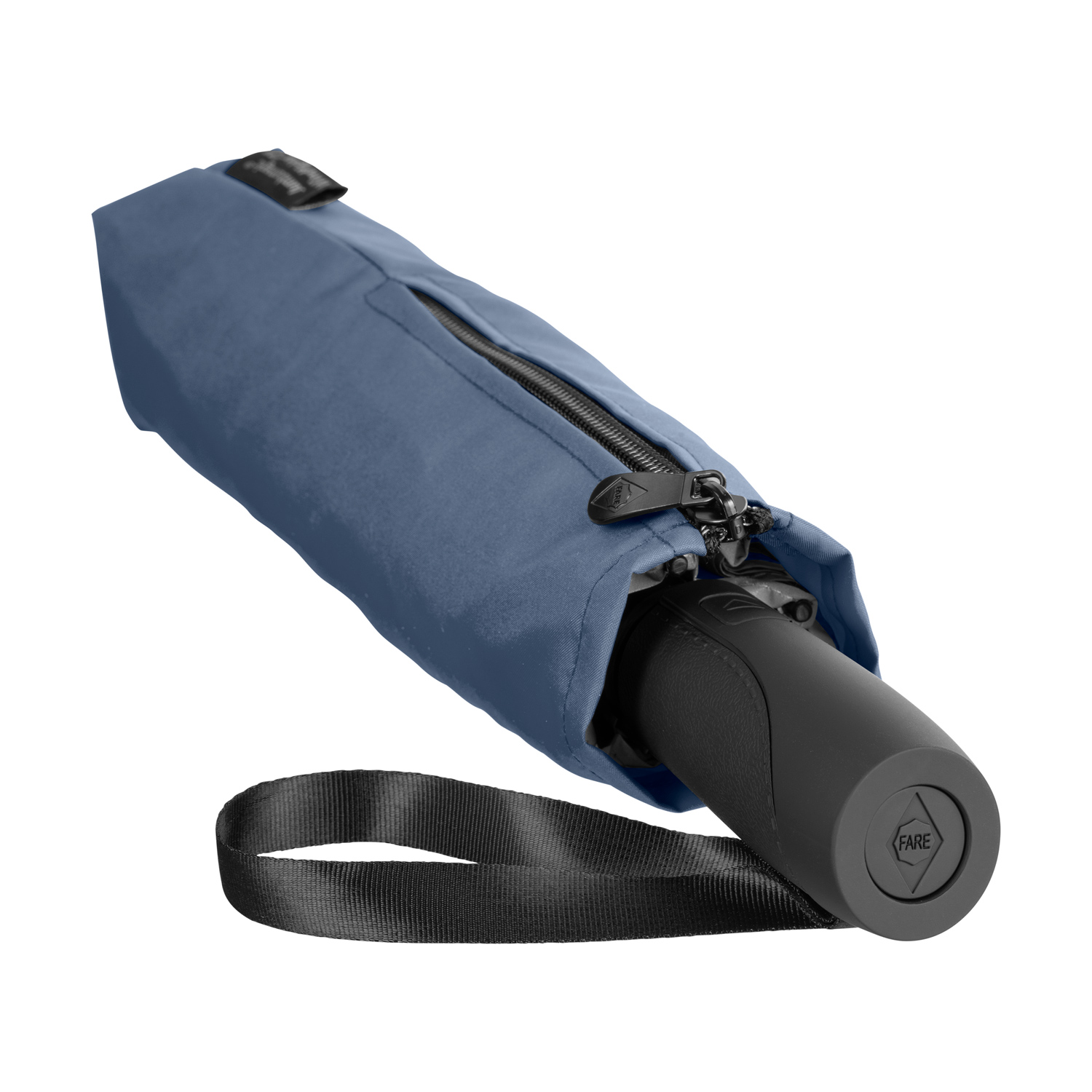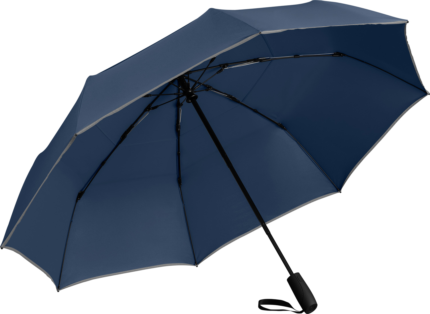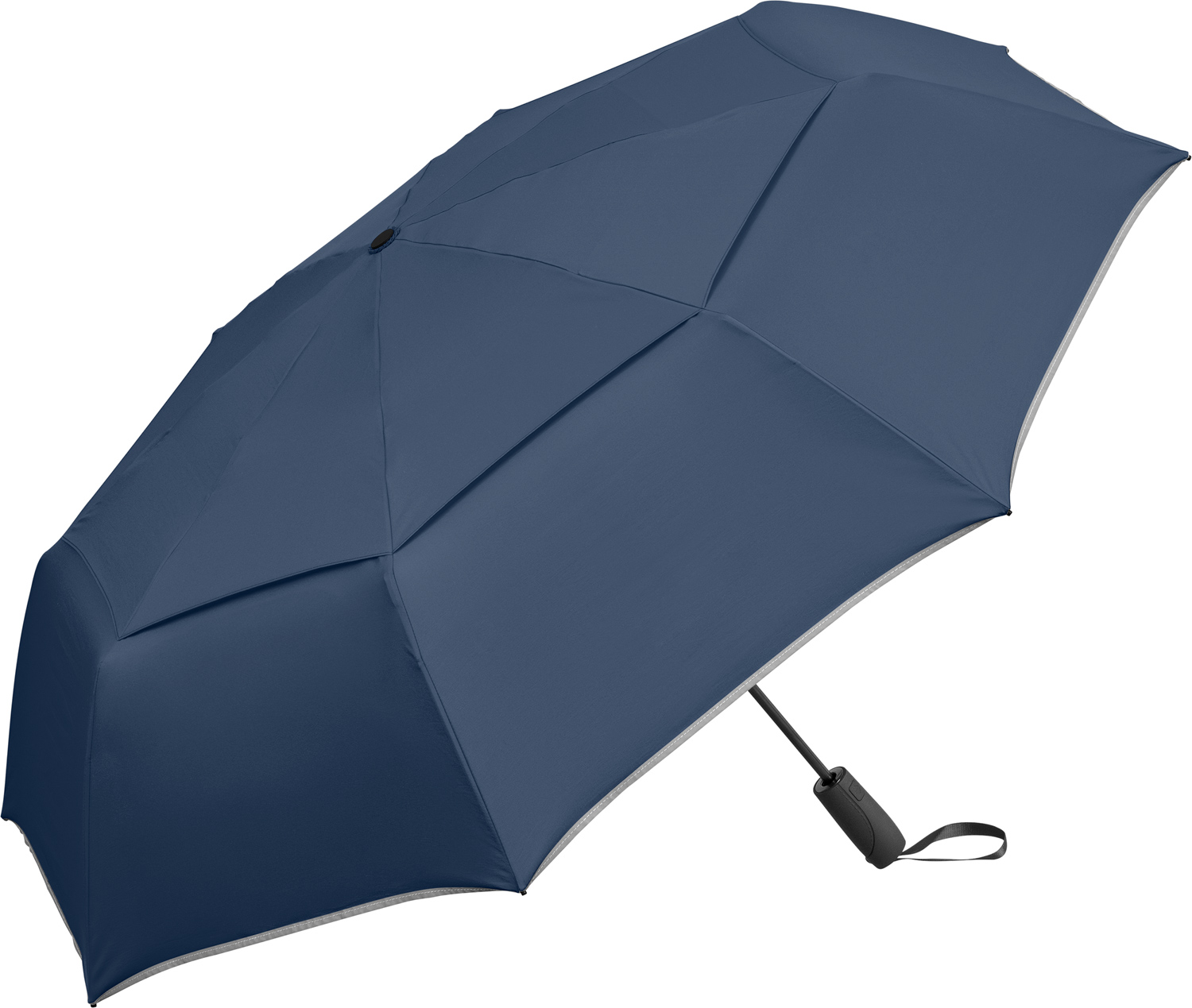 Äußerst stabiler Doppelautomatik-Taschenschirm in Übergröße. Komfortable Doppelautomatik-Funktion zum schnellen Öffnen und Schließen, hochwertiges Windproof-PLUS-System für eine maximale Gestell-Flexibilität bei stärkeren Windböen, flexible Fiberglasschienen, überlappender Ventilationsbezug zur Regulierung von Überdruck durch stärkere Windböen, wassersparend gefärbtes Polyester-Pongee waterSAVE® Bezugsmaterial aus recycelten Kunststoffen und mit modischer Reflexpaspel in Silber, mit waterSAVE®-Label auf dem Schließband, Griff aus recyceltem ABS mit integrierter Auslösetaste und Werbeanbringungsmöglichkeit, komfortables Futteral mit hochwertigem Zipper