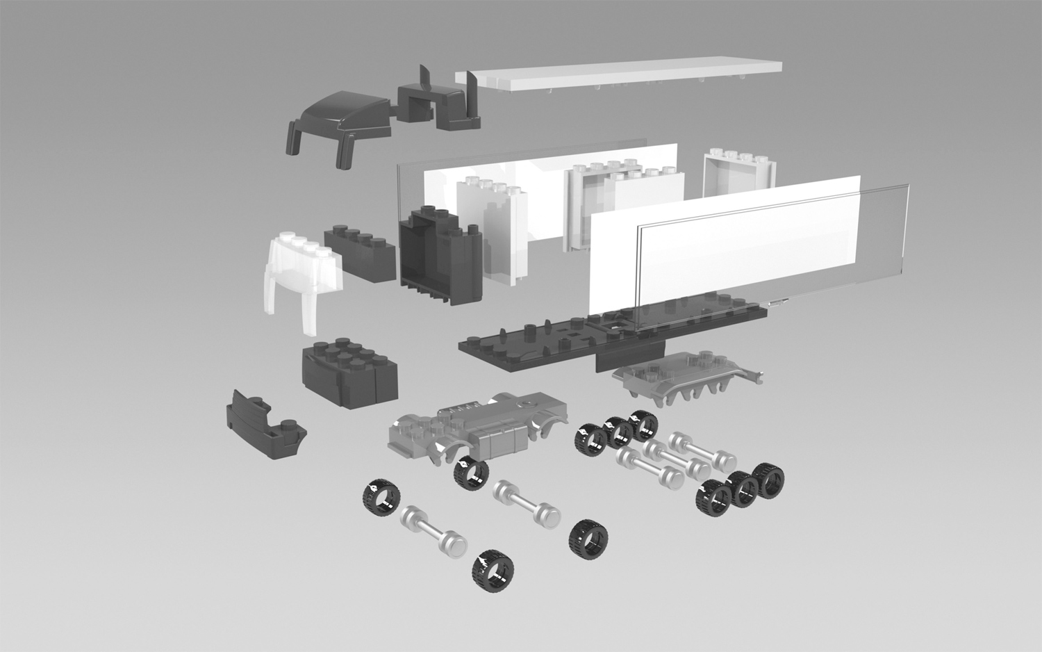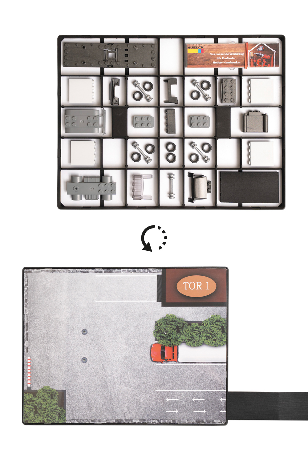 Bausatz mit insgesamt 36 Teilen, die einfach zusammengesteckt werden. Made in Germany. Hinter jedem der 24 Fenster befinden sich Teile, die Stück für Stück einen Sattelschlepper entstehen lassen. Inklusive individuell gestalteter 4-c Umverpackung.