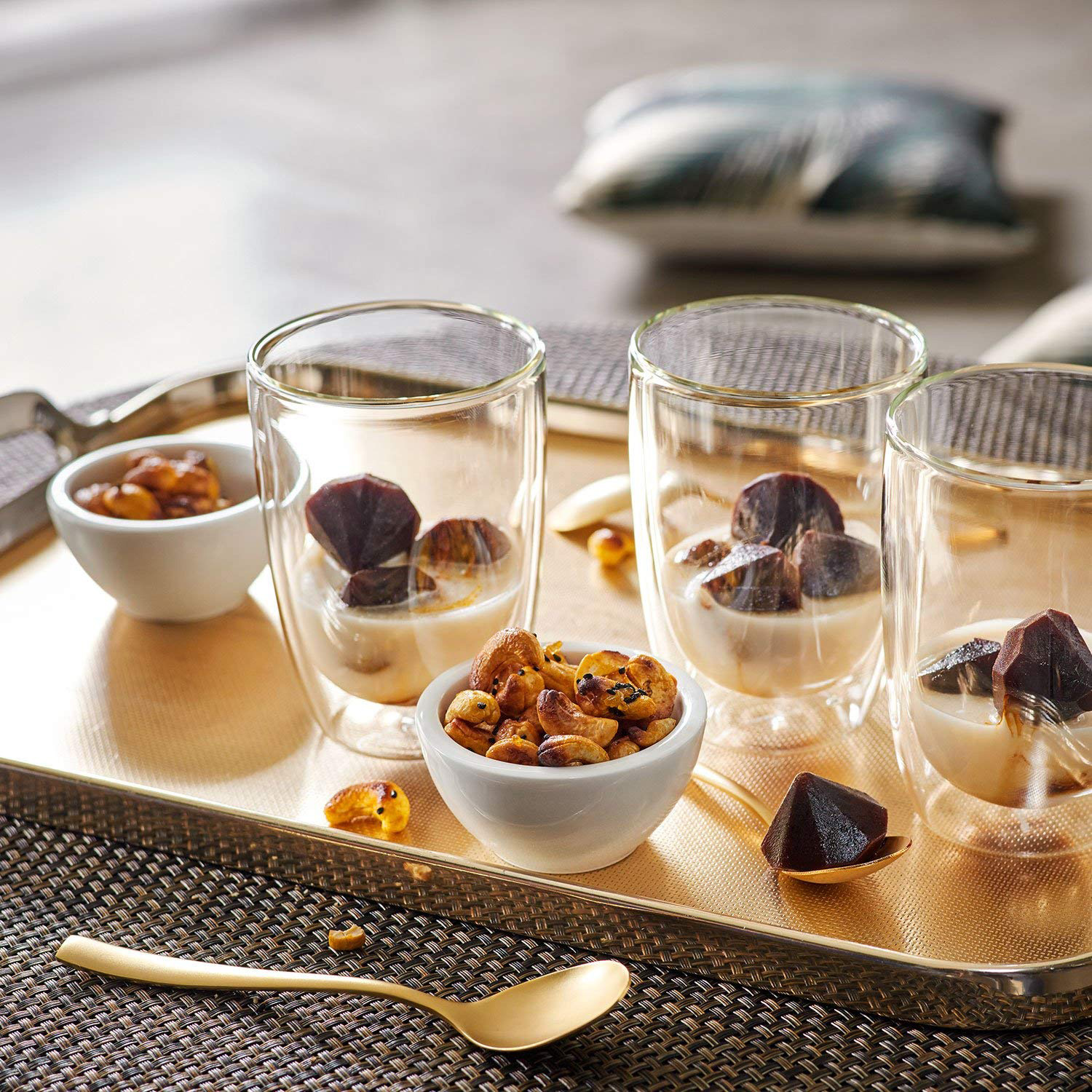 Ob für BBQ, Pizza, Pasta oder beim Frühstück - richten Sie Dips, Saucen, Oliven, Gewürze und Knabbereien besonders attraktiv an.