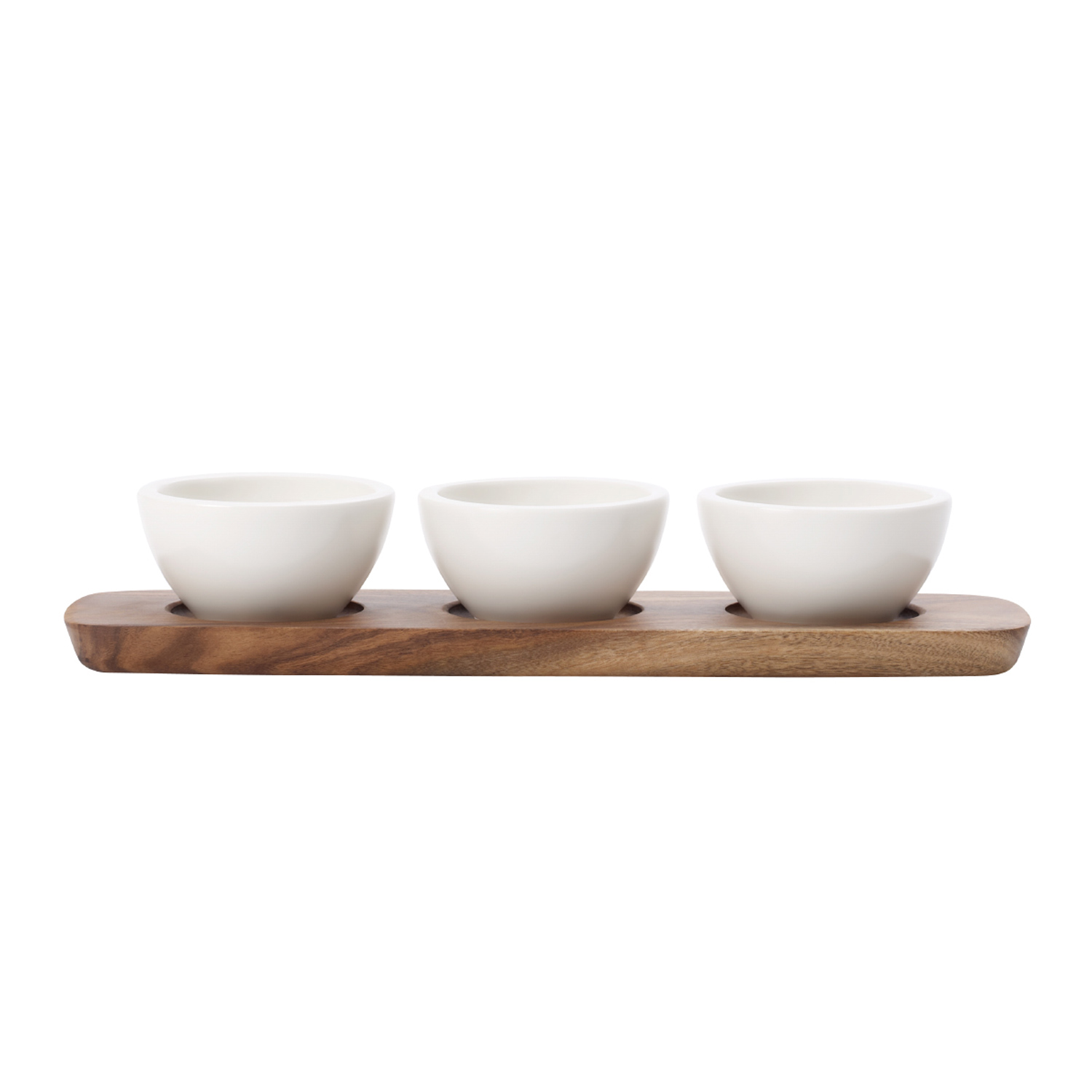 Die drei Dip-Schälchen finden Platz auf dem passenden Holztablett und setzen als Set einen hübschen Akzent auf Ihrer Tafel.