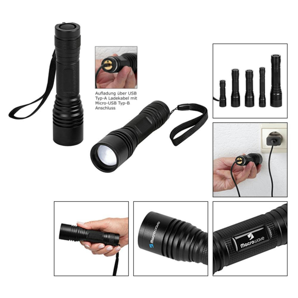 Aufladbare LED Taschenleuchte mit Fokussierung und Signallichtfunktion.