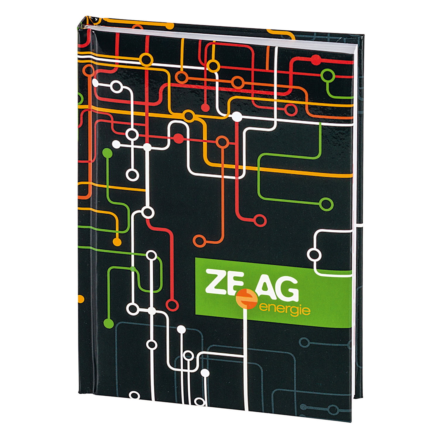Einband 4-farbig nach Ihren Daten bedruckt, 192 Seiten, kariert mit Umrandung und Kopfzeile, Kapitalband (schwarz/weiß), 2 Zeichenbänder (grau/schwarz). Preis ab 500 St.
