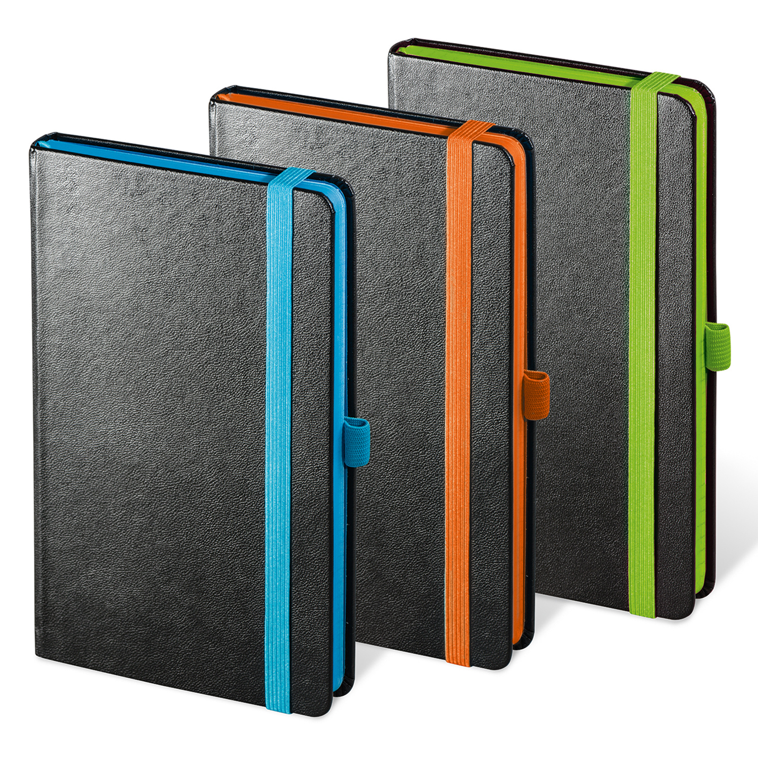 Set-Kombination aus einem Notizbuch & Kugelschreiber & Veredelung zum Komplettpreis. Im Format A5. Ausstattung in blau, orange oder grün kombiniert mit einem Schreibgerät Metallic Matt oder Soft Touch in passender Farbe. Inklusive Prägung auf dem Notizbuc