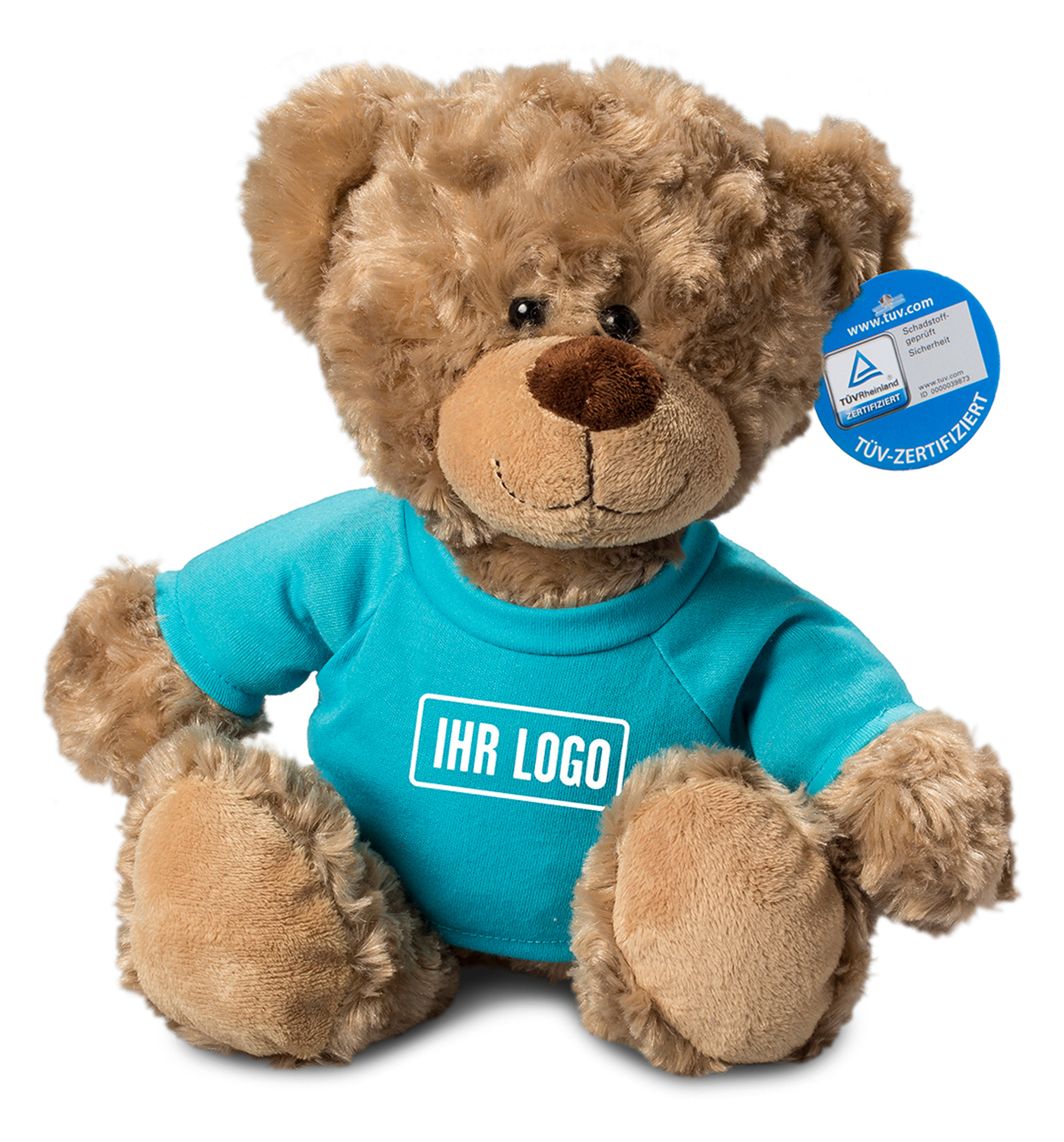 Plüsch Bär Bodo - flauschiges Curly-Plüsch und treue Augen. Er wurde vom TÜV Rheinland auf Herz und Nieren getestet und darf sich stolz mit dem TÜV-Siegel schmücken. Ein besonderer Hingucker individuell bedruckbare Accessoires für Kuscheltiere mit denen Sie aus der Masse sicher herausstechen. Kleiden Sie ihr Maskottchen mit Dreieckstuch, Schal oder T-Shirt um maximale Aufmerksamkeit zu erzielen (Preis auf Anfrage).