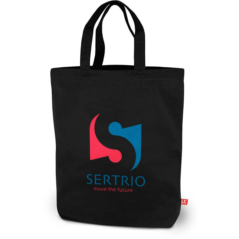 Tasche aus OEKO-TEX® zertifizierter Baumwolle in strapazierfähiger Twill-Qualität mit kurzen Henkeln und Bodenfalte. Gegen Aufpreis mit langen Henkeln und auch in blau erhältlich.