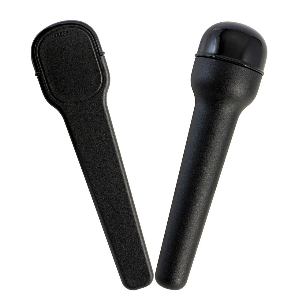 Nach dem Gebrauch kann das Set wieder in der handlichen Box verstaut werden. Die Box besteht aus recyceltem Polypropylen und recyceltem Polycarbonat und ist in den Farben Schwarz, Dunkelblau, Rot oder Weiß erhältlich. Verschlossen mit einer transparenten Kappe aus PC, lässt sich diese durch leichten Druck auf der flachen Rückseite öffnen und abnehmen (gekennzeichnet durch „Press“). Als Zusatzfunktion kann die Box als Messerbank verwendet werden und schützt dadurch die Besteckköpfe vor Kontakt mit dem Untergrund. So können Sie in jeder Umgebung hygienisch das Besteck nutzen. Zur Reinigung können alle Bestandteile in der Spülmaschine gereinigt werden.