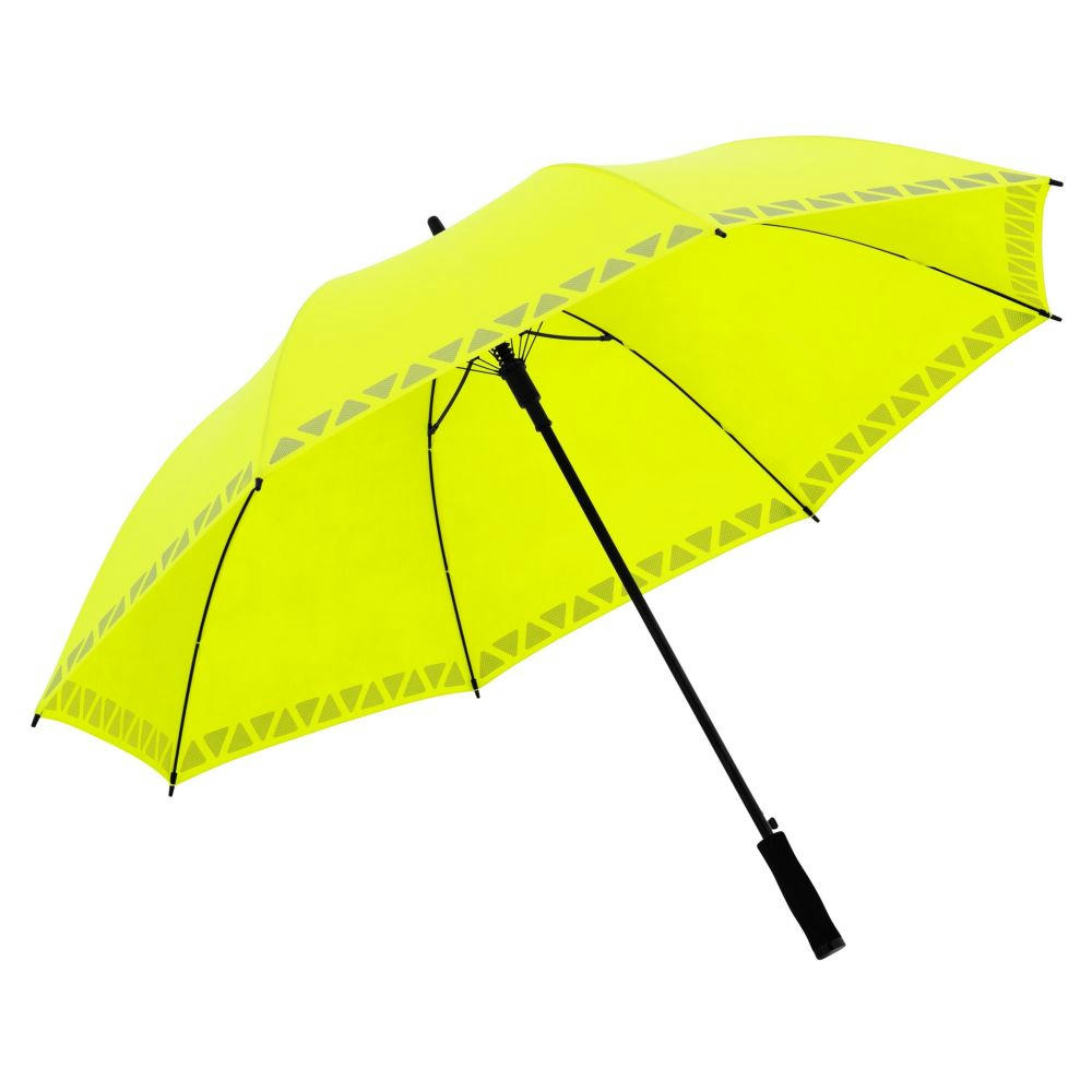 Langschirm mit großem Schirmdach in leuchtenden Farben mit Reflektorelementen - Auch für zwei Personen geeignet. Dunkel, neblig und regnerisch - genau and diesen Tagen sorgt Safety für die nötige Sichtbarkeit bei jeder Tageszeit. Sicherheit für die ganze Familie: die Safety Regenschirmserie bietet mit reflektierenden Elementen und Tagesleuchtfarben eine besonders gute Sichtbarkeit. Im knalligen Neon-Gelb ist ein Auffallen garantiert.