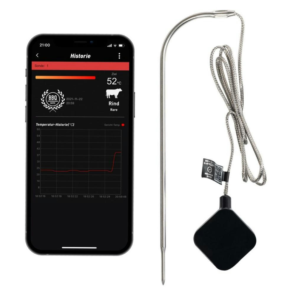 Das Grillthermometer informiert Sie zuverlässig. App „ToGrill“ mit umfangreichem Menü. Sendeeinheit mit Batterie (CR2032 im Lieferumfang)
