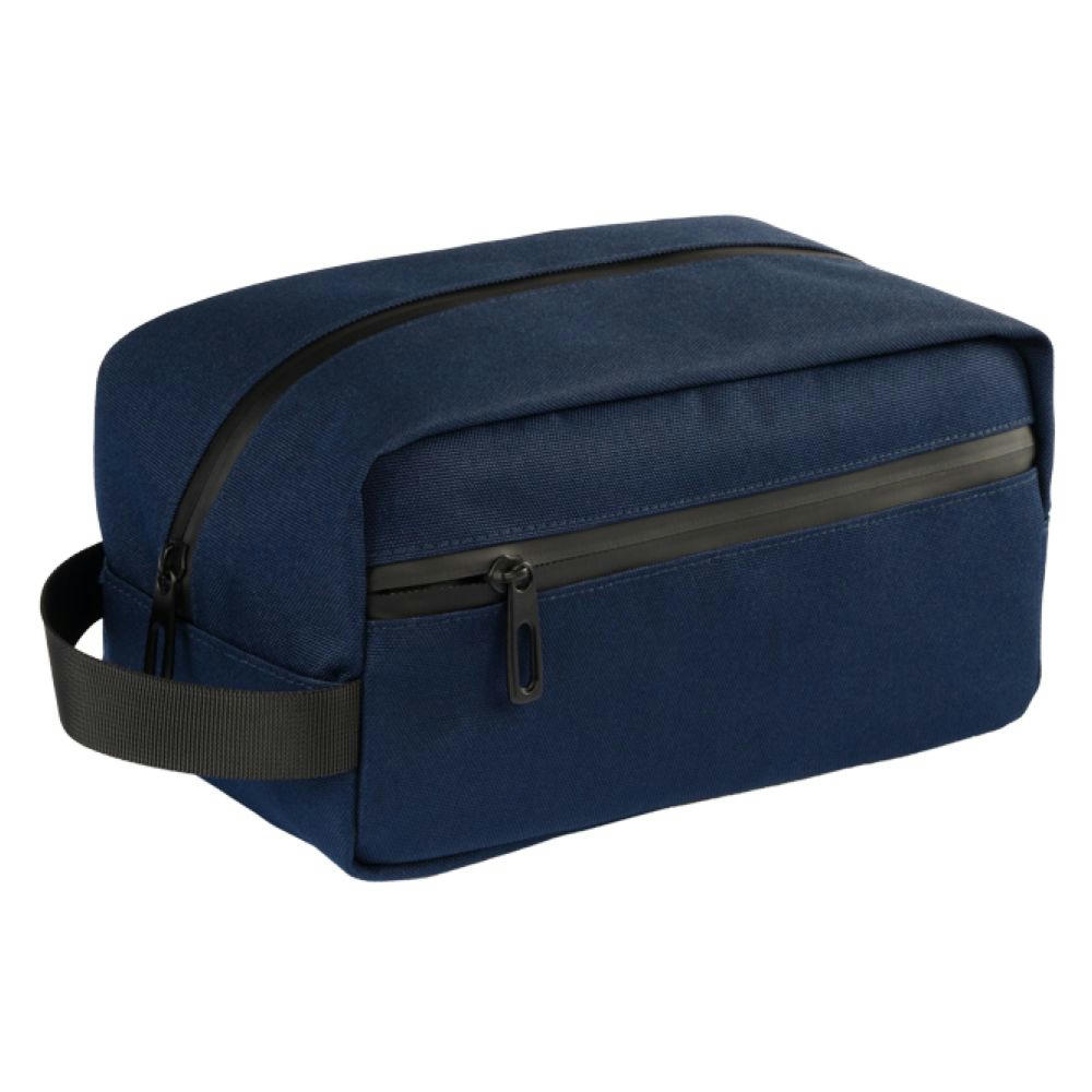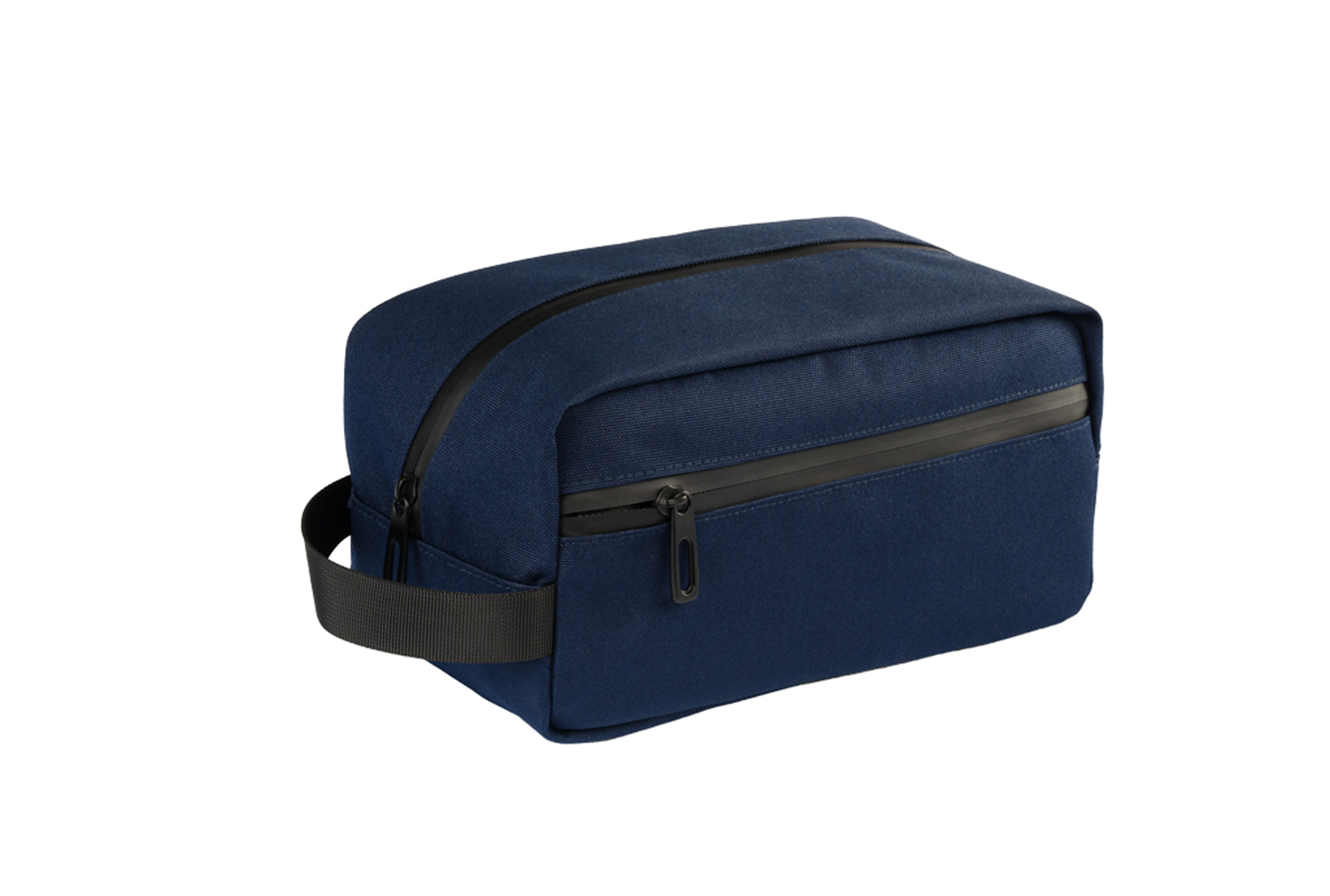 Mit schwarzem gummiertem RV oben, ein RV Fach außen mit schwarzem gummiertem RV, innen 4 Steckfächer, seitlich Webband als Henkel.