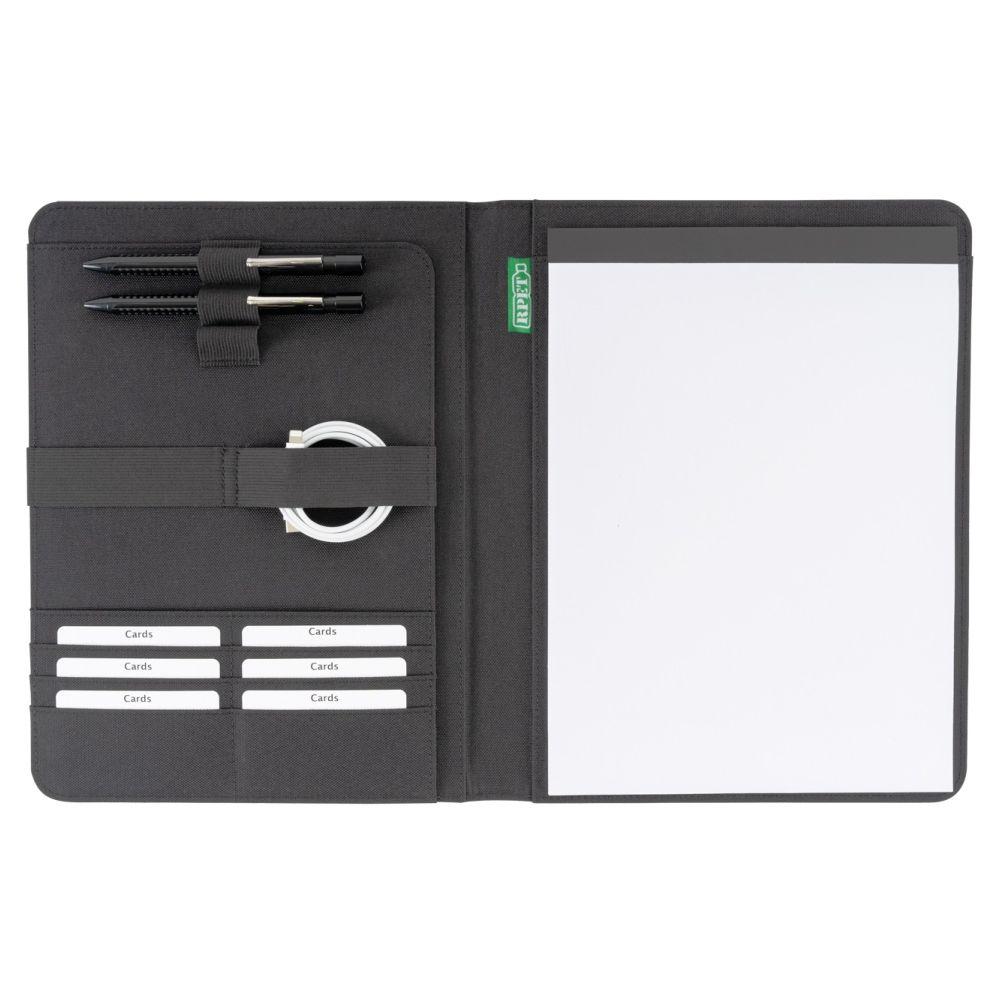 Mit A4 Block, Steckfach, 3 Stiftschlaufen, Kartenfächer, Gummihalterungen.