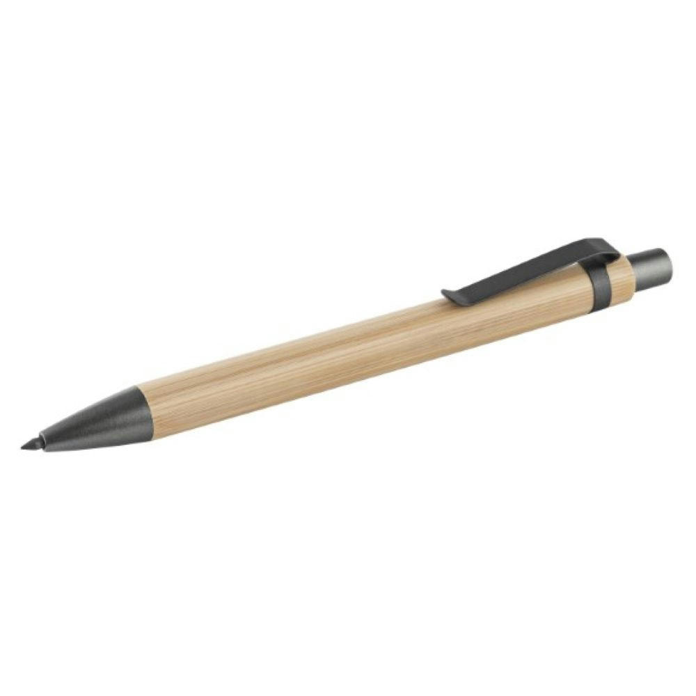 Die Revolution des Schreibens! Aus natürlichem Bambus & edlen gunmetall Metallapplikationen mit einer Schreibkapazität von ca. 100 konventionellen Bleistiften, praktisches Einklicken der Spitze, komfortables Schreiben, Scribbeln, Zeichnen. Extra Effekt: normale Kugelschreibermine einsetzbar zum endlosen Weiterverwenden, im Designkarton.