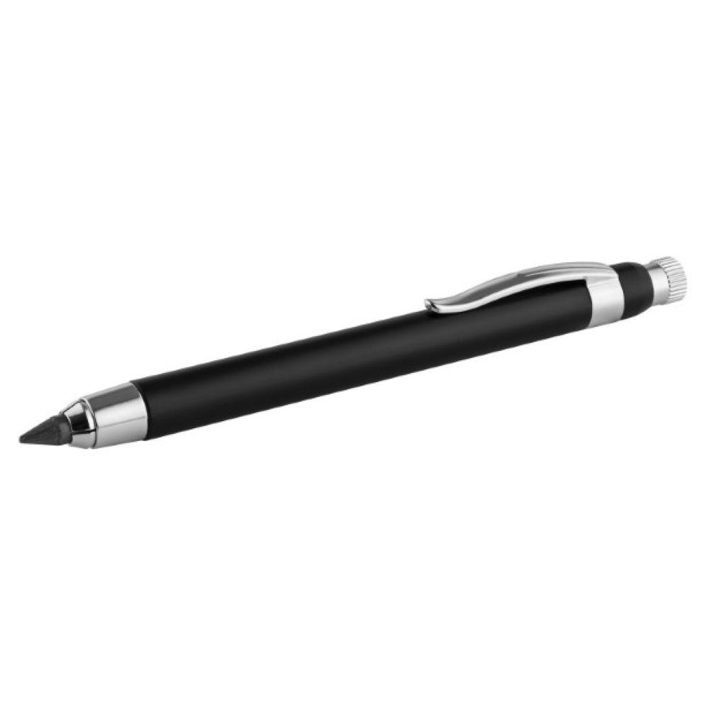 Schicker Fallminenbleistift im eleganten Aluminiumgehäuse - schreibt nahezu auf allen Oberflächen, Minenstärke 5,6 mm, mit Spitzer im Druckknopf, incl. 6 Reserveminen, im Designkarton.