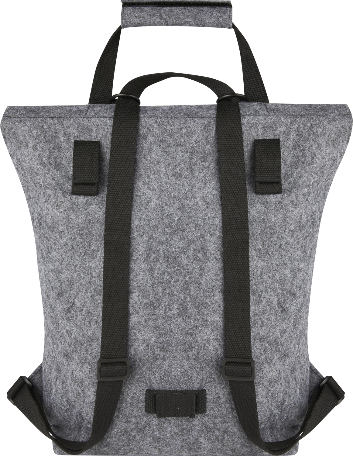 Rolltop-Rucksack und Fahrradtasche in einem. Aus hochwertigem, weichem und strapazierfähigem GRS-zertifiziertem, recyceltem Filz. Mit großem Hauptfach, einer Vordertasche, verstellbaren Schultergurten und 3 Klettverschlussgurten zum Befestigen am Gepäckträger eines Fahrrads. Die Schultergurte lassen sich leicht in ein langes Tragegriffsystem umwandeln oder so bündeln, dass sich die Gurte nicht in einem Fahrradrad verfangen können.