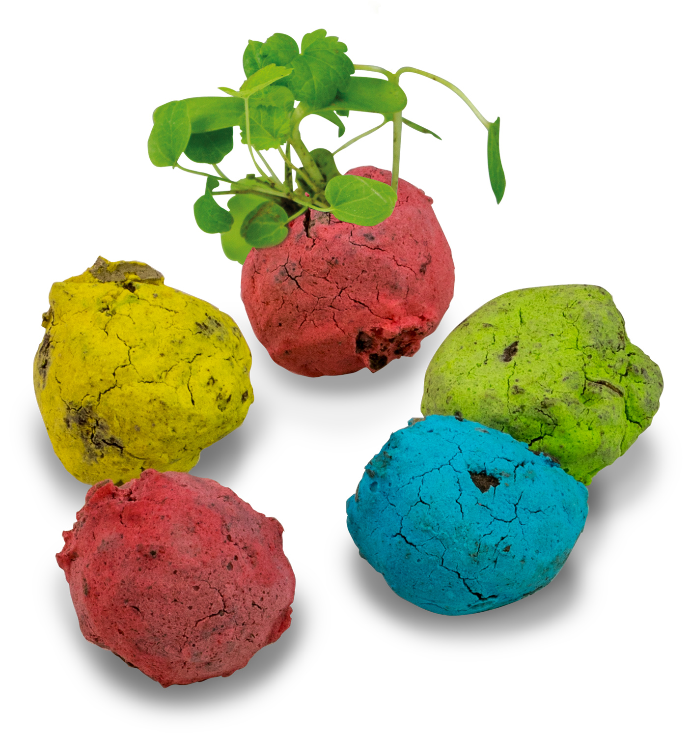 Kleine Kugeln, bestehend aus Sommerblumensamen, Erde und Tonpulver, welche beliebig und direkt auf dem Boden verteilt werden können. Kein Einpflanzen notwendig. Von 1 - 6 Kugeln auch in weiteren Verpackungen erhältlich. Inkl. einem 4c Druckmotiv.