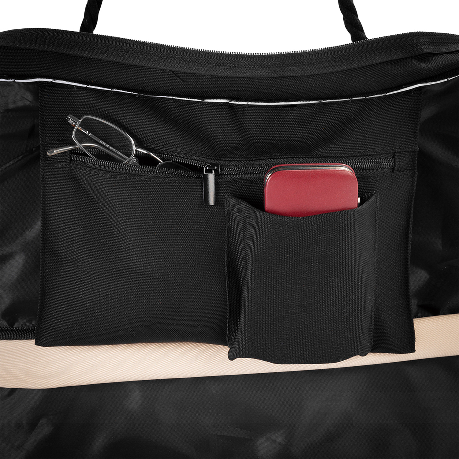 großes Hauptfach mit Reißverschluss, Reißverschlussinnentasche und Inneneinsteckfach, vergrößerbar um ca. 10 cm mit Rundum-Reißverschluss, Kordel-Tragegurte ca. 88 x Ø 1,1 cm, Volumen: 42l.