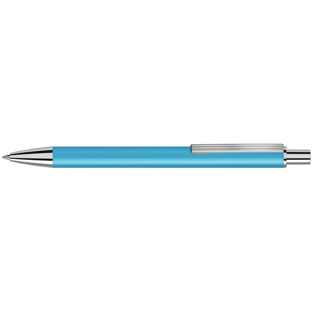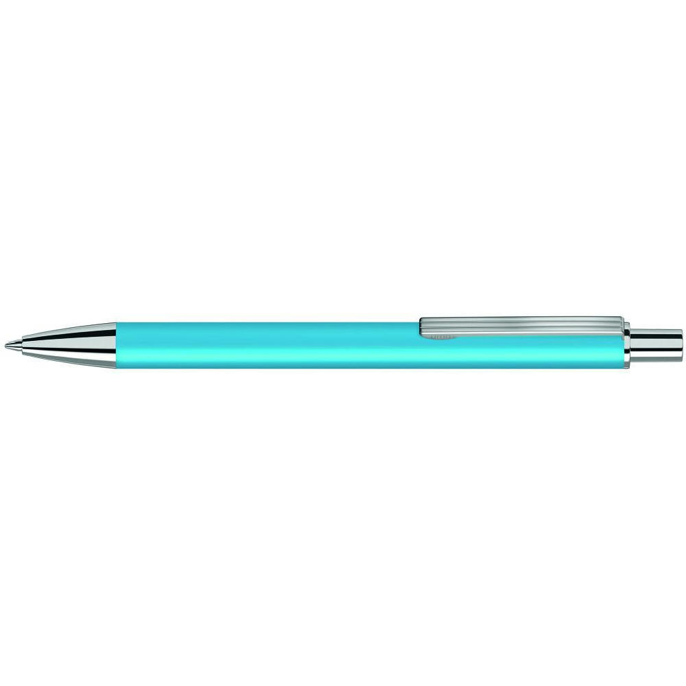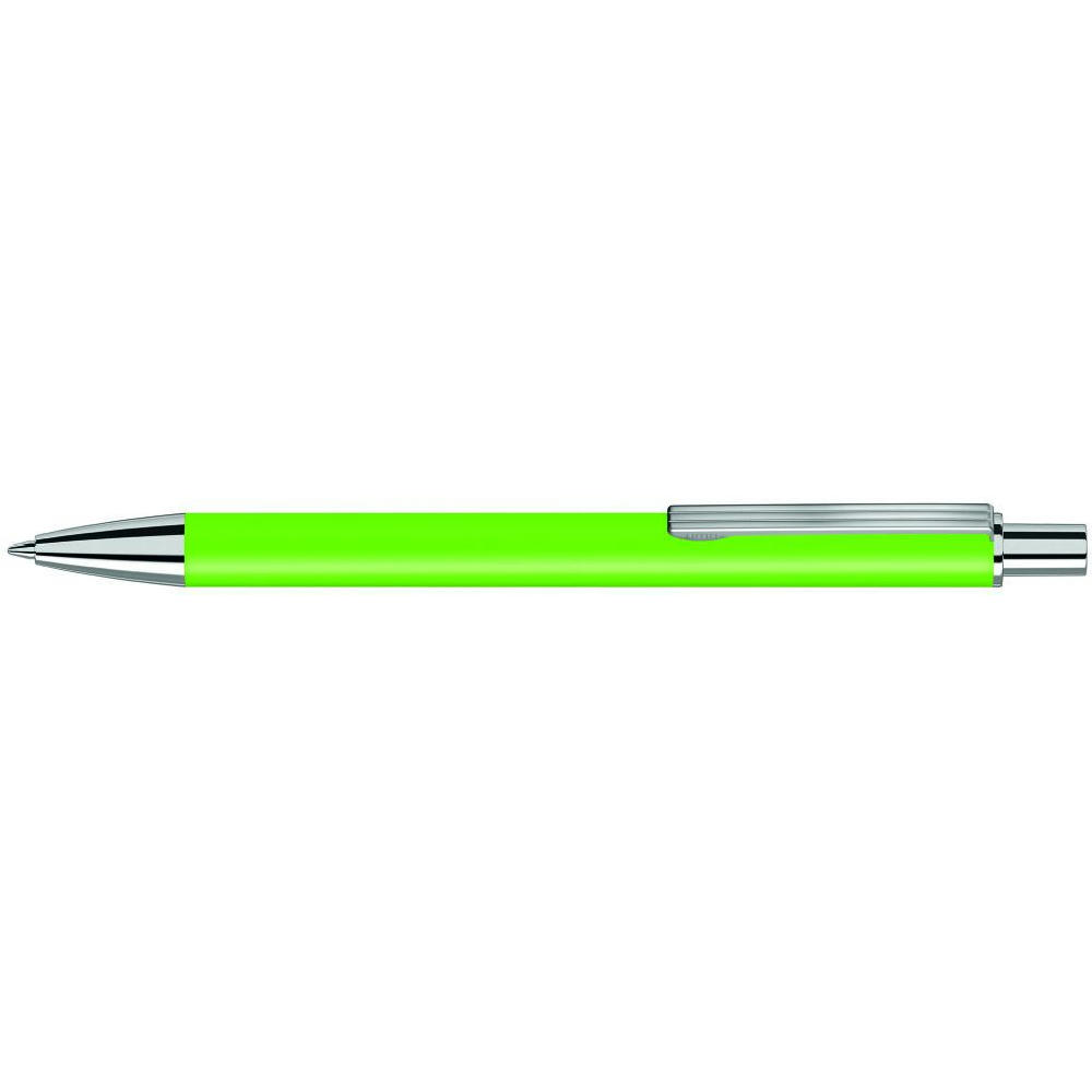 Metall-Druckkugelschreiber mit matter Oberfläche aus recyceltem Aluminium. Metallclip mit eingelassenen Rillen, Metallspitze und Drücker in silber glänzend.