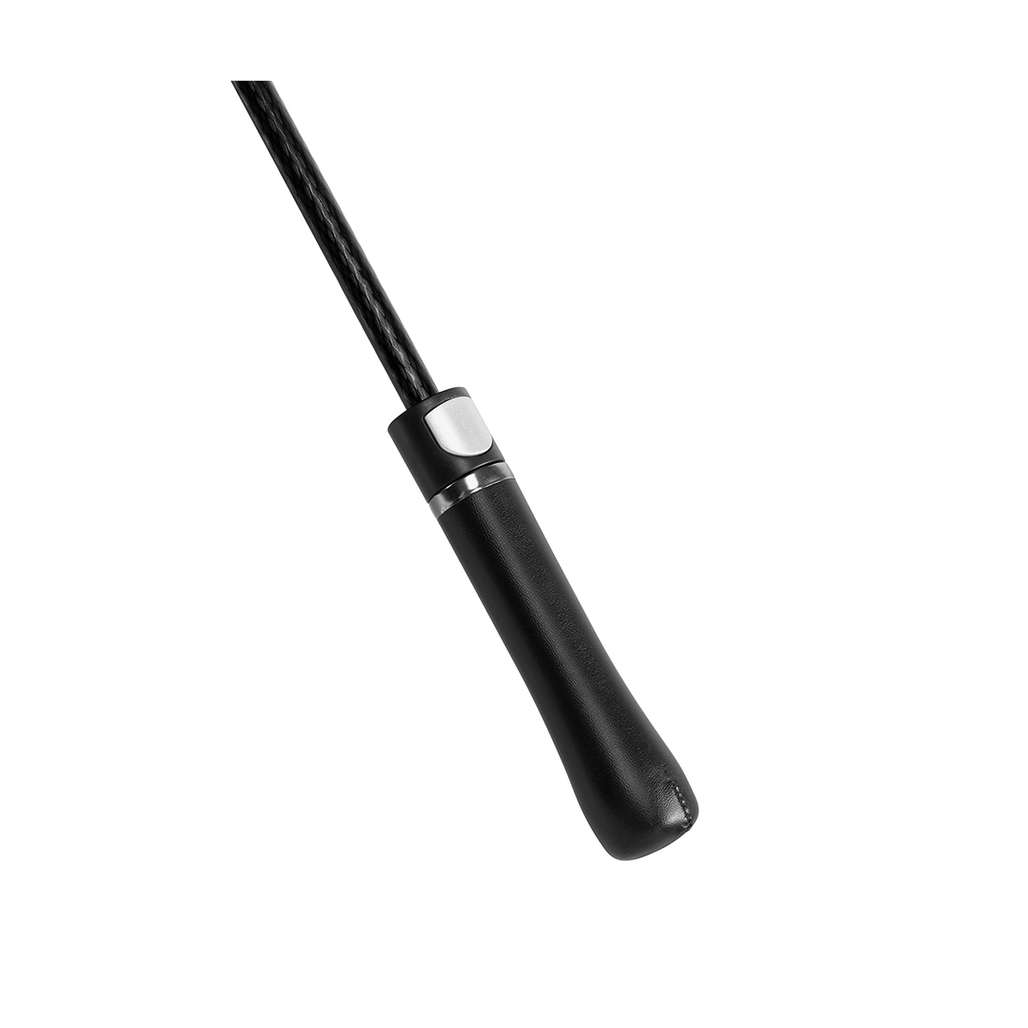 Bespannung: 190T Pongee, Automatik, 8 Segmente,85 cm Fiberglasspeichen schwarz. Windproof. 13 mm Metallschaft in schwarz, Griff schwarz aus Kunstleder mit silbernem Druckknopf, Kunststofftips, schwarze Kunststoffspitze.