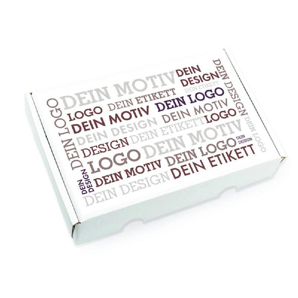 Ab 100 Stück mit Ihrem Etikett im 4c Druck auf dem Deckel des Geschenkkartons, ab 1.000 Stück vollflächig bedruckt im Offsetdruck: Der Geschenkkarton ist portooptimiert und kann ohne Umkarton versendet werden. Beweisen Sie Ihren Geschmackssinn und verschenken Sie eine Oster-Edition der Trüffelmandeln mit Kakao und Kokosmandeln mit weißer Schokolade. Deren perfekte Osterei-Form wird abgerundet mit Oster-Motiven auf der Faltschachtel. Sie suchen eine andere Größe? Dieses Premium Präsent ist auch mit 1, 2 oder 3 Faltschachteln erhältlich.