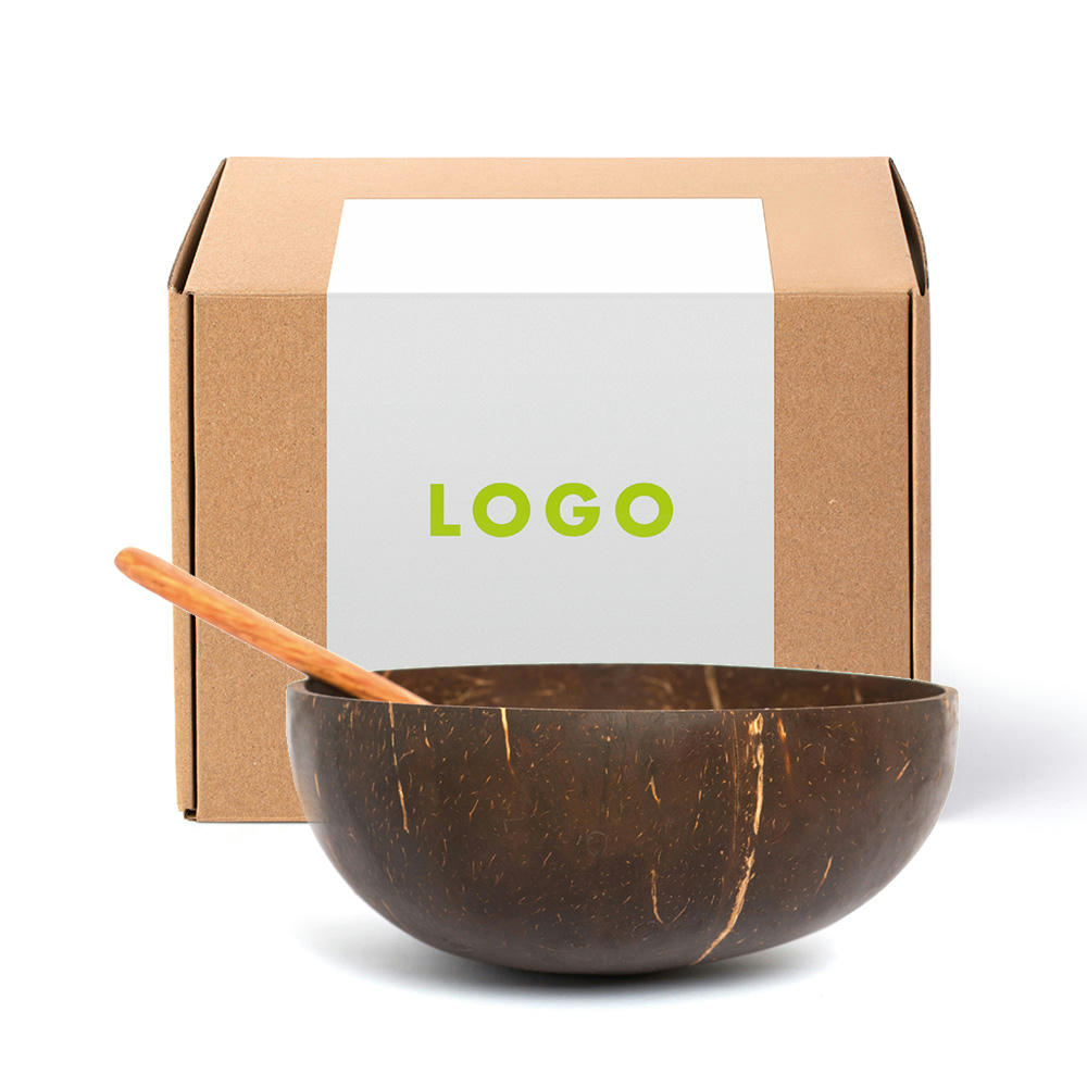 Nachhaltiges Geschenkset mit 2 x Schälchen aus Kokosnüssen, 2 x Holzlöffeln und Online-Rezeptheft. Da es sich um ein reines Naturprodukt handelt, variiert das Maß der Schalen zwischen 11-12 cm Durchmesser. Ihr Firmenlabel auf dem Einzelkarton, auf dem digitalen Rezeptheft und auf der Compliment Card.