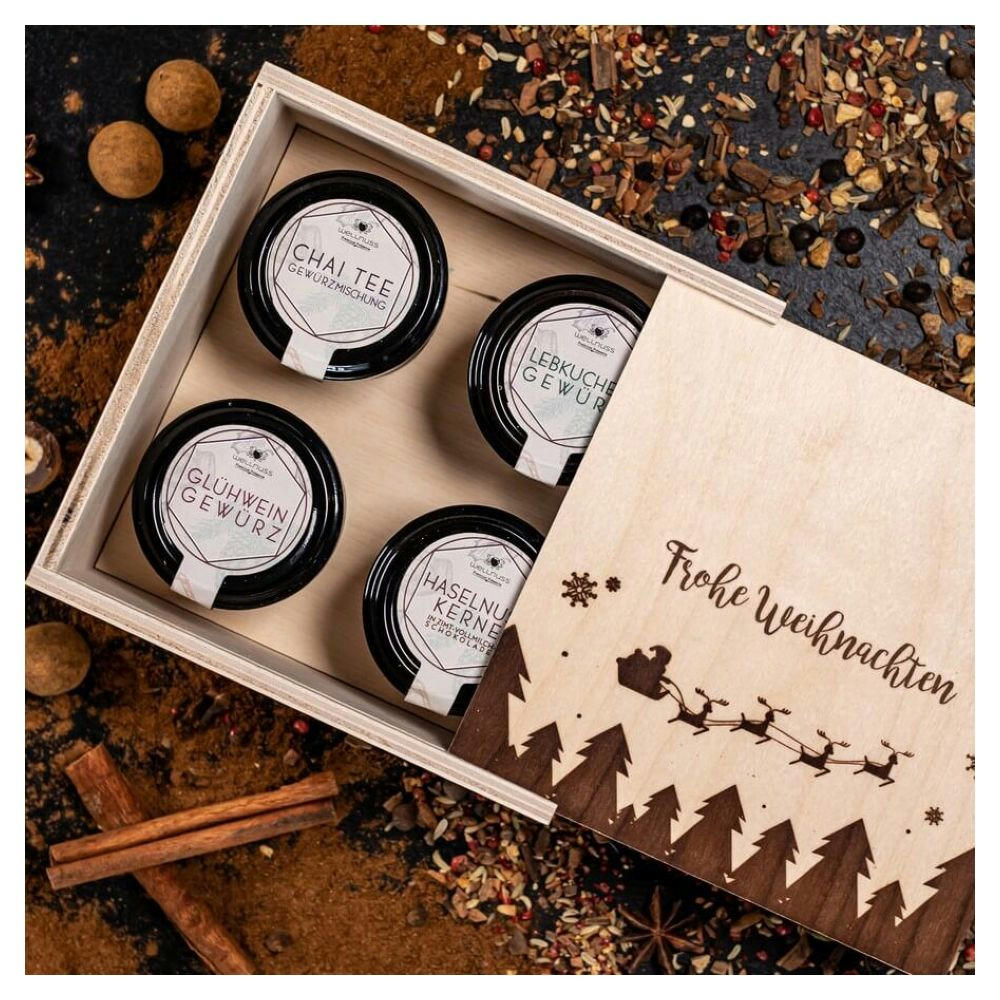 Gourmetkästchen aus Birkenholz mit 4 Gourmet Gewürzen/Chili