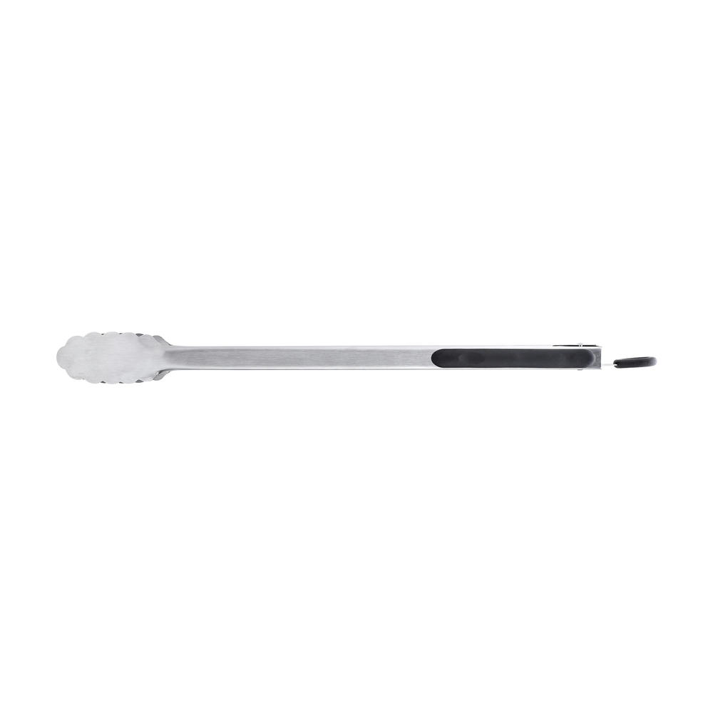 Edelstahl-Grillzange kann über Ziehen der Schlaufe am Kopf verriegelt oder geöffnet werden.