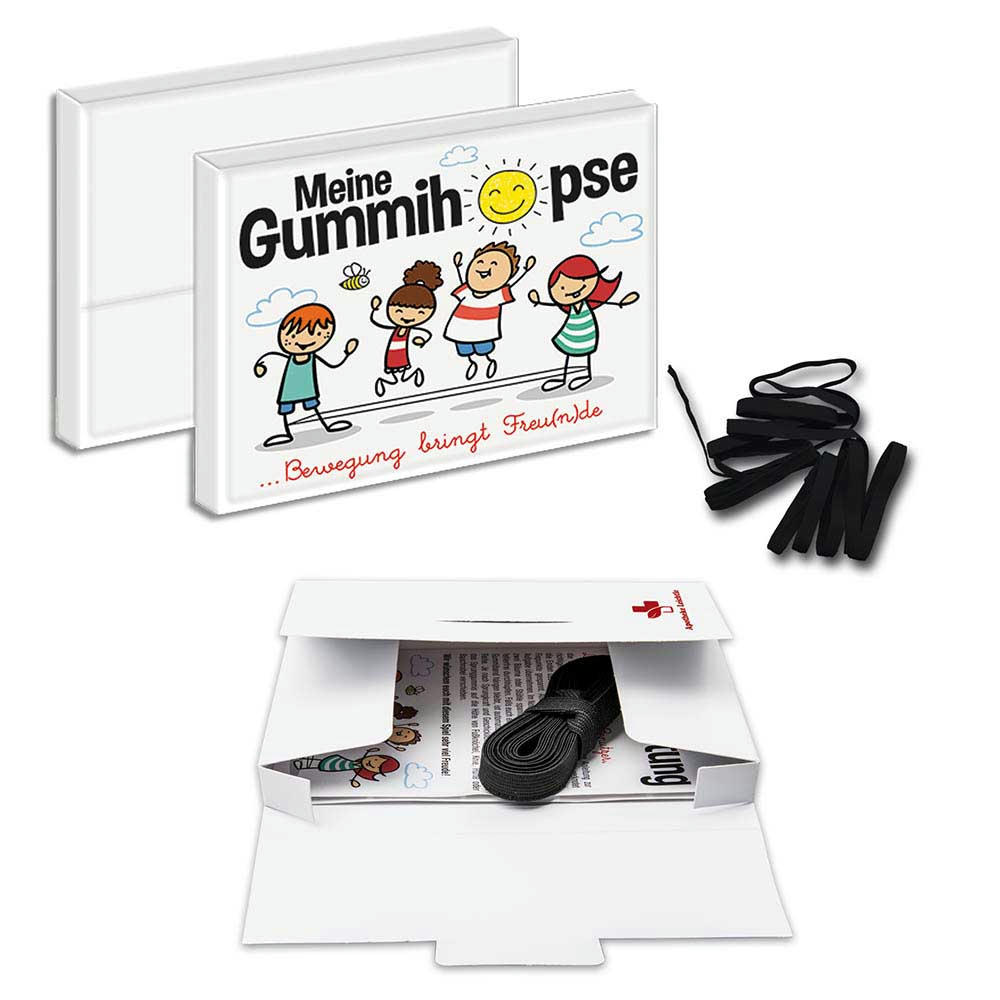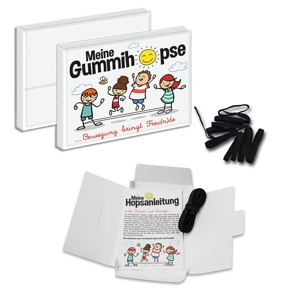 Erleben Sie den Klassiker aus der Kindheit neu! Mit dem Gummitwist (auch Gummihopse genannt) bringen wir ein spaßiges und aktives Spiel zurück. Das Set enthält ein Gummiband sowie eine Spielanleitung, die Kindern und Erwachsenen zeigt, wie man mit diesem einfachen Spiel viel Freude haben kann und in Bewegung bleibt. Die Lieferung erfolgt in einer ansprechend gestalteten Mappe.