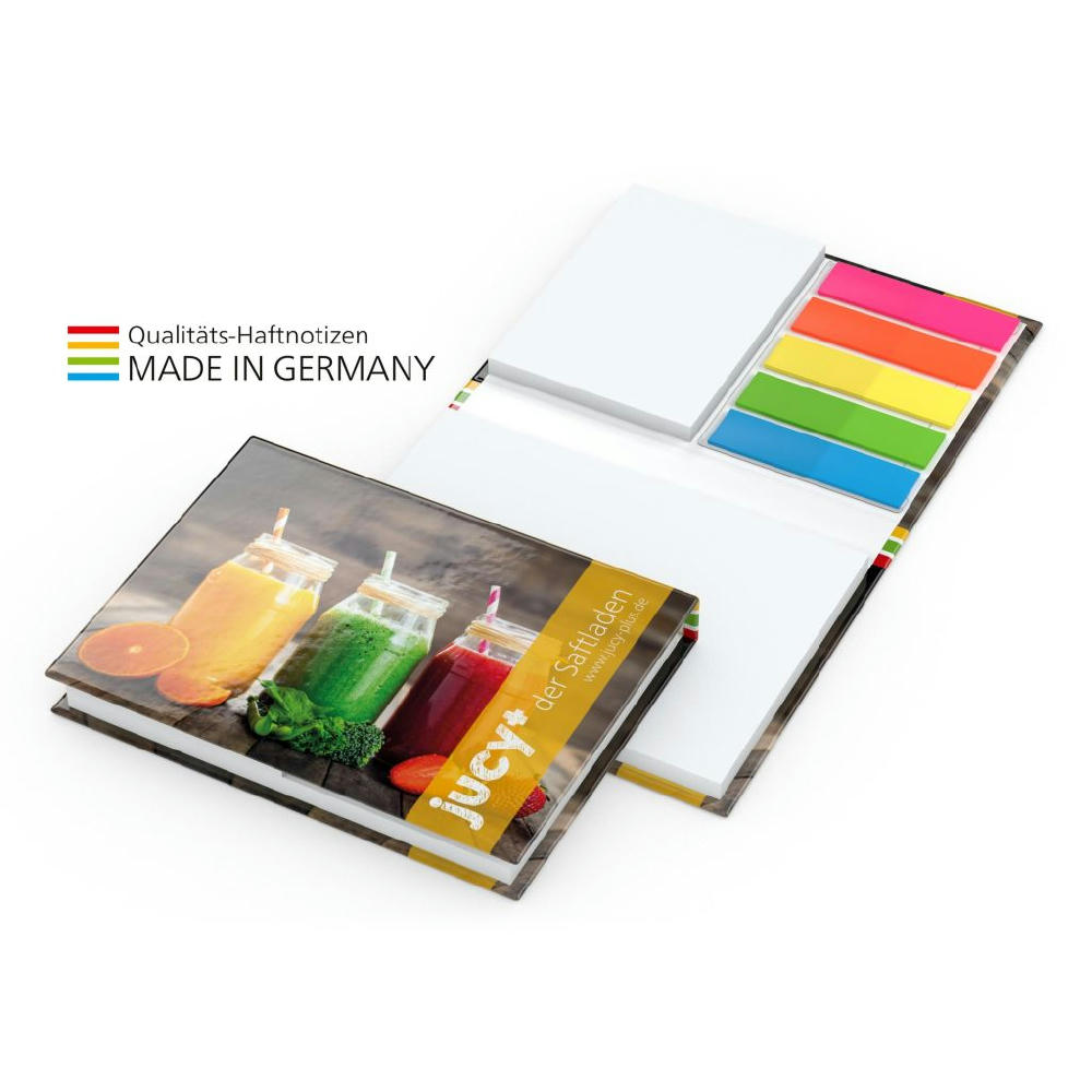 Der Bestseller unter den Kombi-Sets – Brüssel Bookcover Individuell Bestseller: unschlagbare Kombination aus zwei unterschiedlich großen Haftnotiz-Blocks und einem bunten Filmmarker-Set im Bookcover-Umschlag; für den Schreibtisch sowie für unterwegs; gleich 3 individuell gestaltbare Werbeflächen – Werbeeindruck in 4C-Quality auf dem Umschlag sowie auf den Haftnotizen inklusive