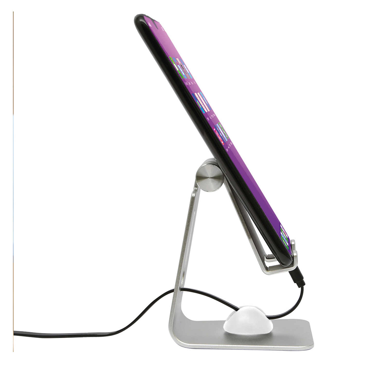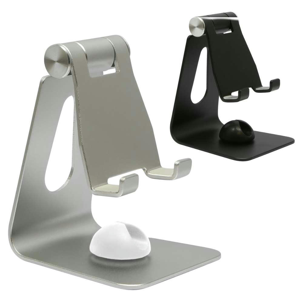 Praktisch für jeden Arbeitsplatz! / Smartphone-Ständer aus Aluminium / mehrfach verstellbarer Neigungswinkel mit Kabelbremse.