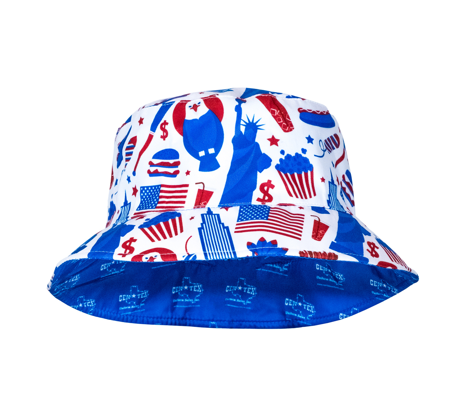 Wendbarer Fischerhut für Festivals, Firmenfeiern, Events und vieles mehr. Preis inkl. 4-farbigem, beidseitigem Allover-Druck.