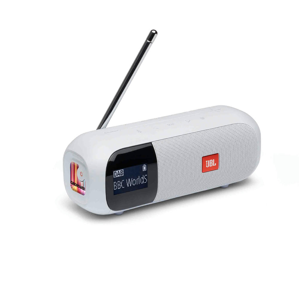 Der elegante JBL Tuner 2 ist ein kompaktes tragbares Radio mit kristallklarem Sound, Bluetooth und 12 Stunden Wiedergabezeit. Die Radiostation ist wasserdicht (IPX7) und hält somit auch einem möglichen Regen, einer Poolparty oder Schneefall stand.