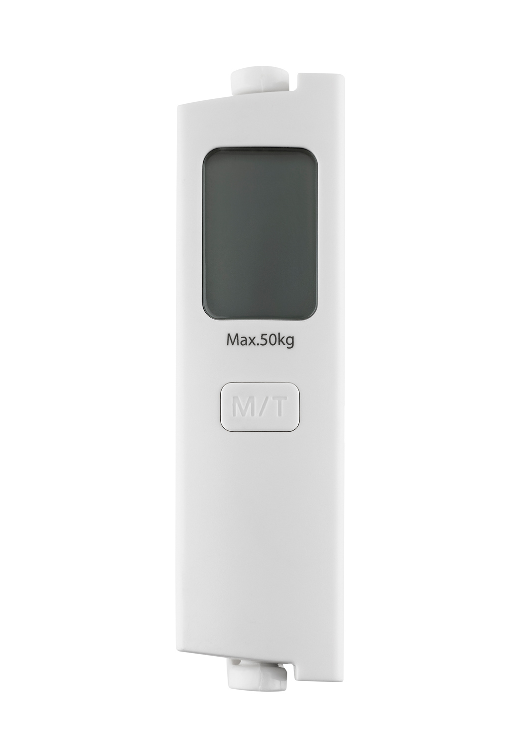 Innovative Travelwaage mit umweltfreundlicher Dynamofunktion (d.h. immer einsatzbereit ohne Batterien), sehr kompakt, mit Digitaldisplay und Maxwertfixierung.