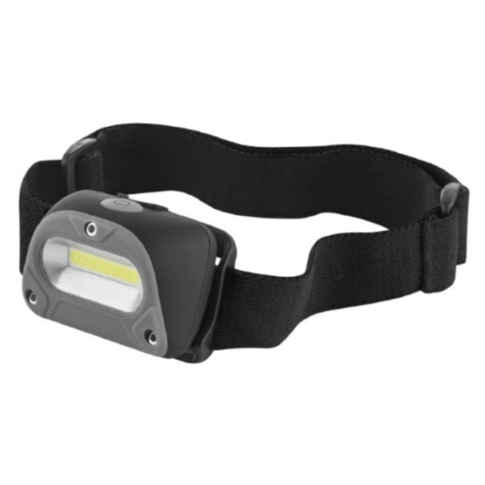 Wiederaufladbare Kopflampe mit Flutlicht COB Lichttechnologie in 2 Lichtstufen (100%/60%). 800 mAh Akku, 3 Watt COB . Ladekabel. Im Designkarton.