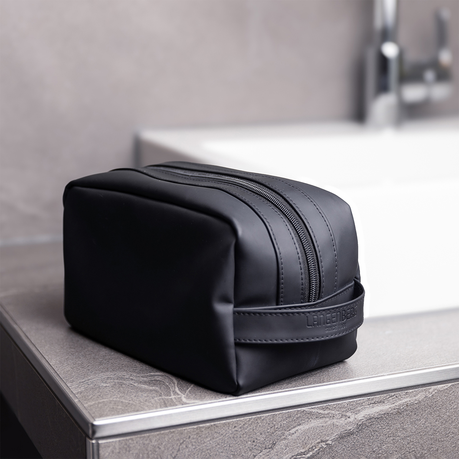 Diese Kosmetiktasche besteht aus 1mm mattem PU und einem schwarzen 210D rPET Innenfutter, was sie besonders robust und umweltfreundlich macht. Sie bietet ein Hauptfach mit Reißverschluss sowie ein Reißverschluss-Innenfach für zusätzlichen Stauraum. Ein Mesh-Fach im Inneren sorgt für eine gute Übersicht, während das Air-Tag Fach eine praktische Aufbewahrungslösung bietet. Der Tragehenkel und der Haken zum Aufhängen machen die Tasche besonders praktisch. Mit einem Volumen von ca. 2,5 Litern ist diese Kosmetiktasche der ideale Begleiter für Reisen und den täglichen Gebrauch.