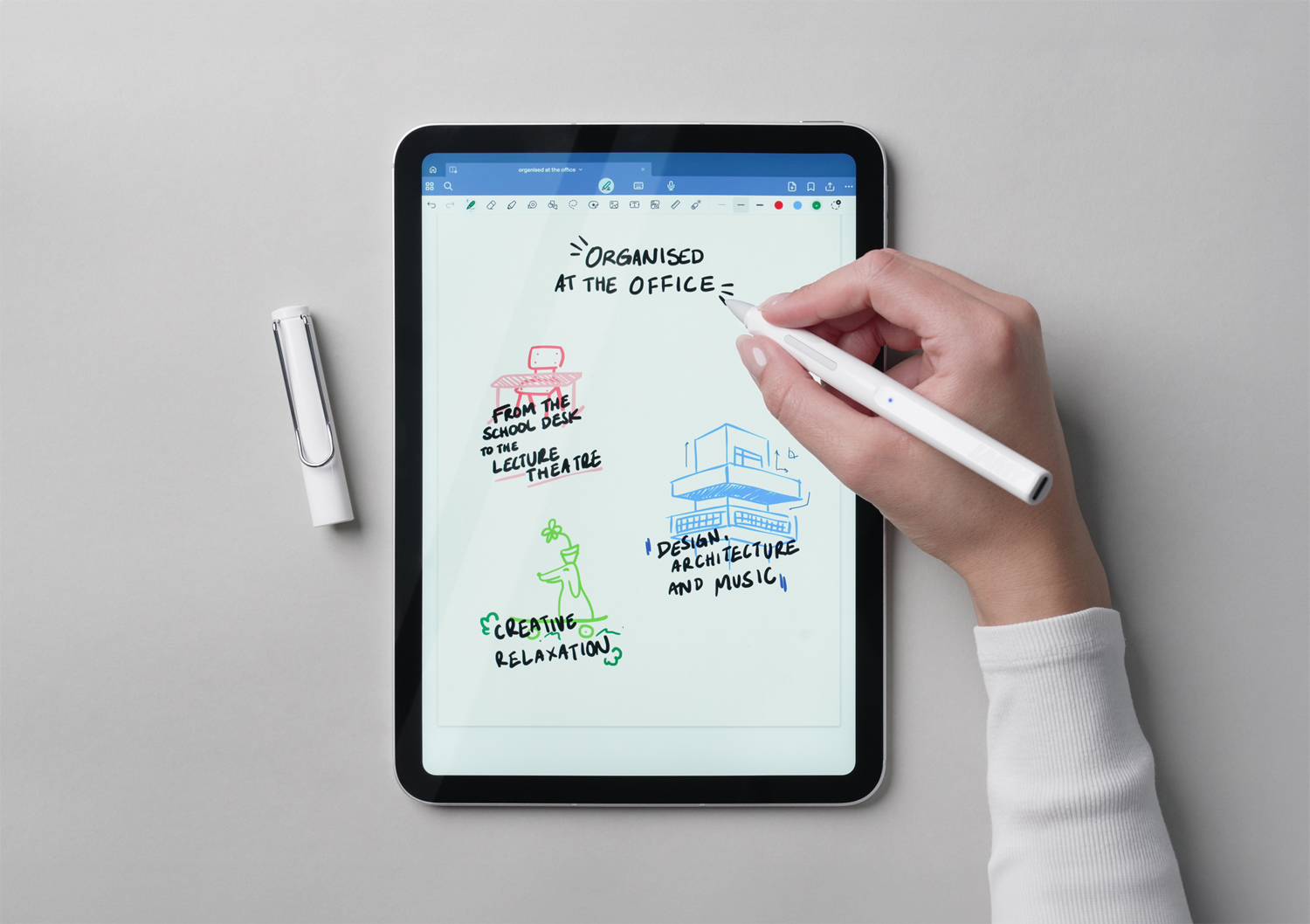 Digitales Schreibgerät für Apple iPads.Einfach einschalten und loslegen: Ob Zeichnen, Malen,Organisieren, Bilder bearbeiten, Videos schneiden oder Spielen – der LAMY safari note+ ist ein vielseitiger Begleiter im Arbeitsalltag, als