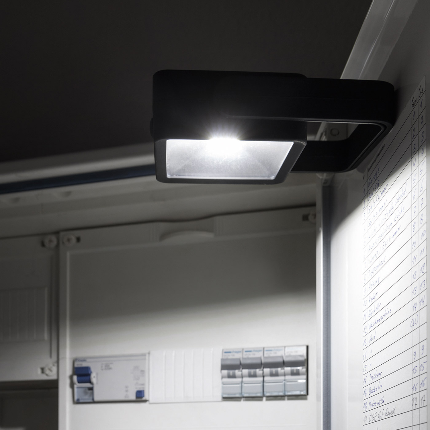 Der kompakte COB-Strahler liefert zuverlässig eine starke harmonische Nahfeldausleuchtung (bis ca. 10 -15 m). Henkel zum Aufstellen / Aufhängen. Inkl. 4 AAA Batterien.