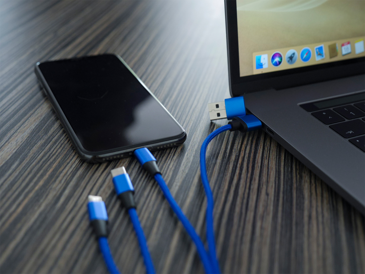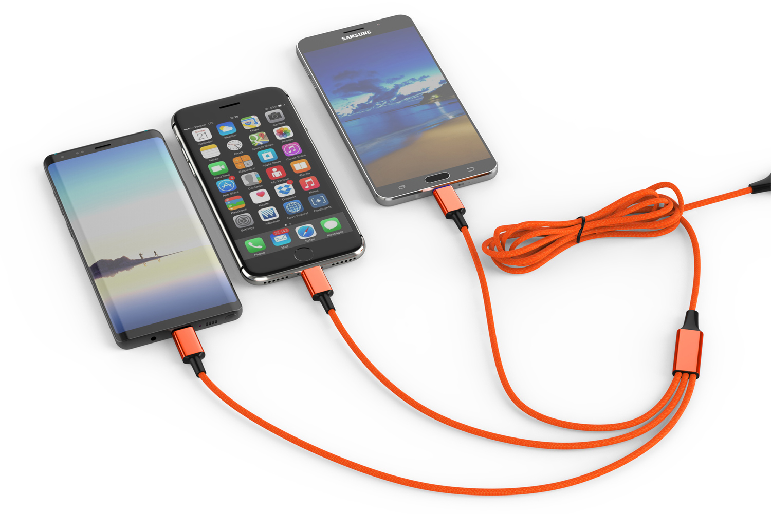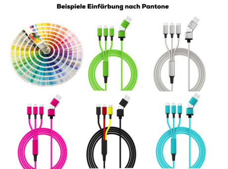 120cm langes Ladekabel aus robustem Aluminium und Nylon. Anschlüsse: Apple Lightning (non MFI), Micro-USB, USB Typ C USB 2.0/USB-C. Der Ladestrom von bis zu 3A sorgt für einen raschen Ladevorgang und ermöglicht sogar das gleichzeitige Aufladen von drei unterschiedlichen Geräten. Um für alle Anschlussarten perfekt gerüstet zu sein besitzt das Hydra ULTRA zusätzlich einen speziellen USB/USB-C Kombianschluss und kann somit an jeder herkömmlichen USB und an jeder neuen USB-C Buchse angeschlossen werden. Optional gegen Aufpreis ab 500 St. Gehäuse und Kabel individuell nach Pantone.
