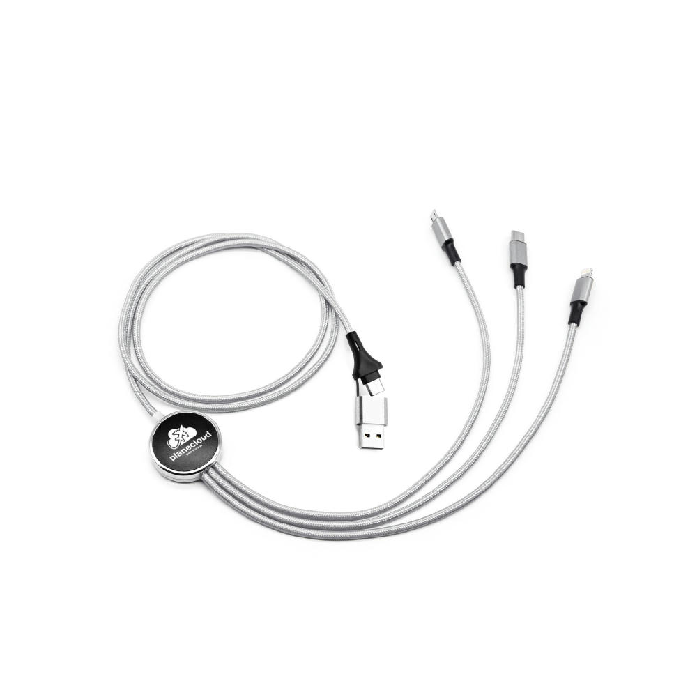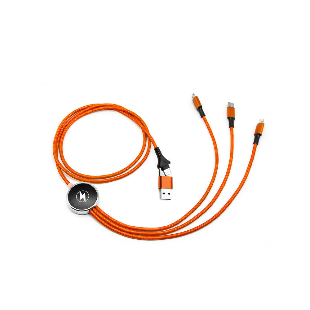 Multi-Ladekabel mit 5 Anschlüssen und LED-Logo.