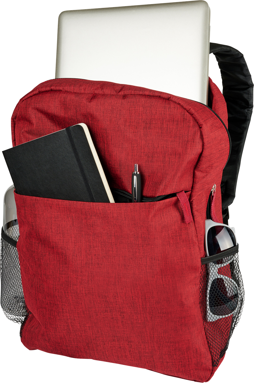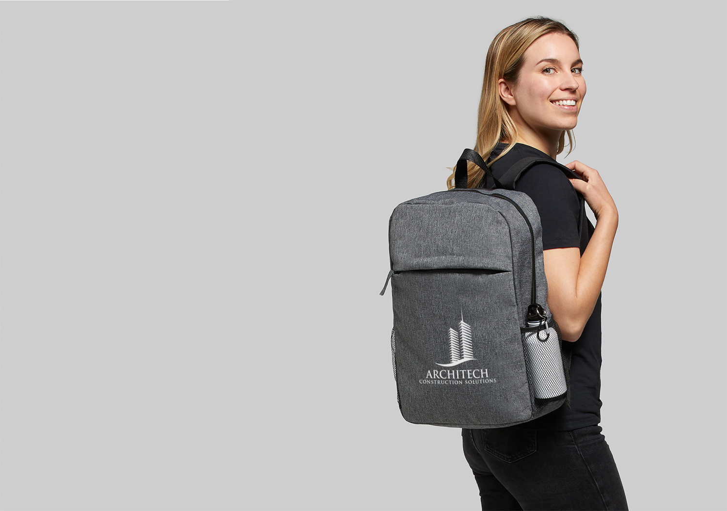 Ausgestattet mit einem großen Hauptfach mit Reißverschluss und einer 15"-Laptophülle sowie einem vorderen Reißverschlussfach für den schnellen Zugriff auf mobile Geräte. Wird mit praktischen, gepolsterten Schultergurten, Haltegriff und einer Netz-Wasserflaschentasche geliefert.