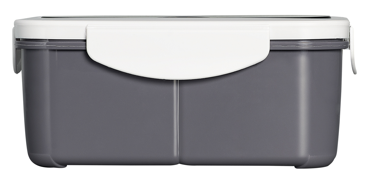Auslaufsichere Lunchbox mit Inneneinteilung und Aufbewahrungsfach für den Göffel. Volumen 1300 ml