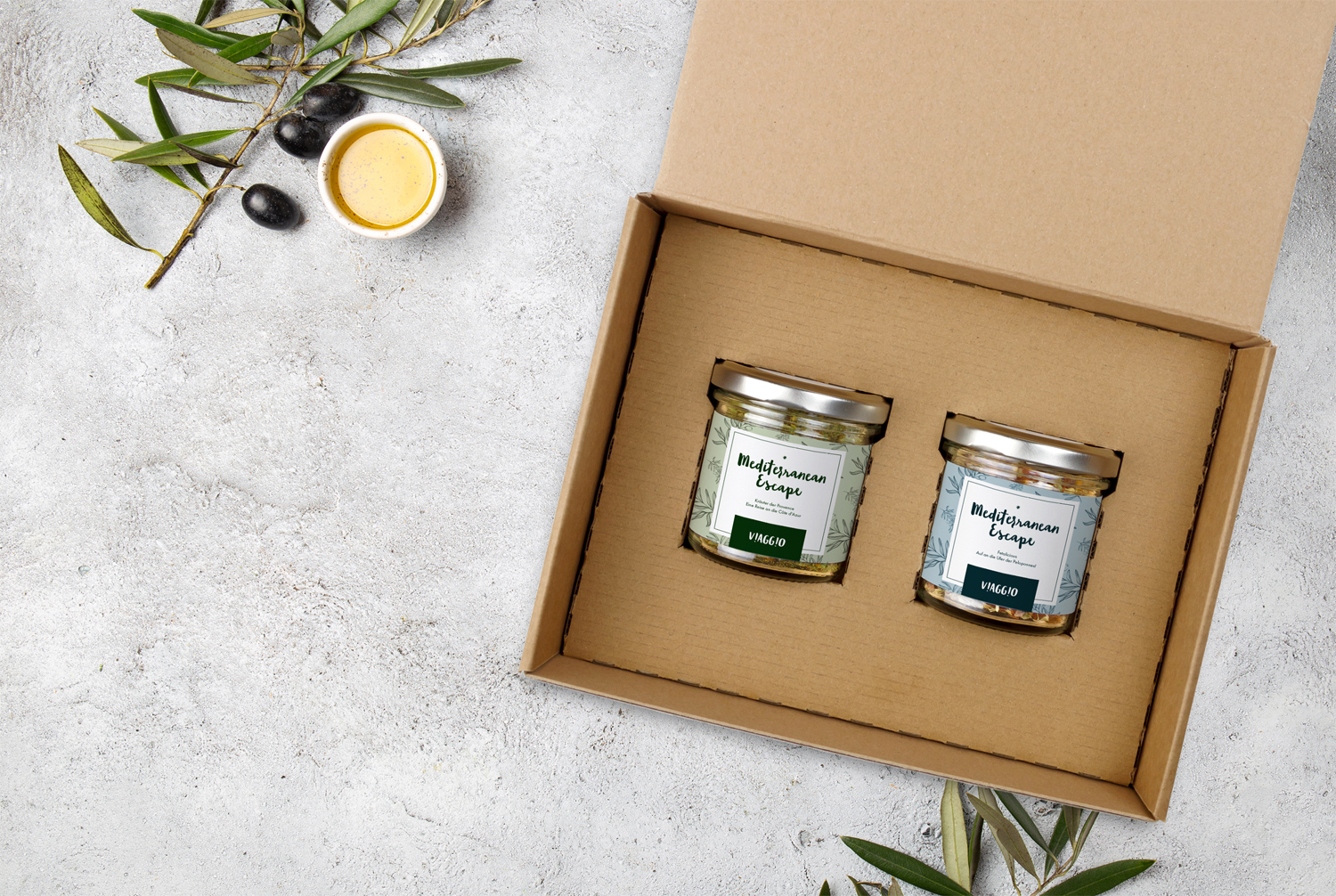 Eine aromatische Reise von Süd-Frankreich auf die Peloponnes. Inhalt: 1 x midi Kräuter der Provence 1 x midi FETALICIOUS Gewürzmischung Box aus Kraftkarton mit Inlay. Optional auch mit Re-Use Deckel (Streuaufsatz) für eine längere Lebensdauer! Preis inkl. 4c-bedruckten Etiketten auf Gläsern und Label für die Box.