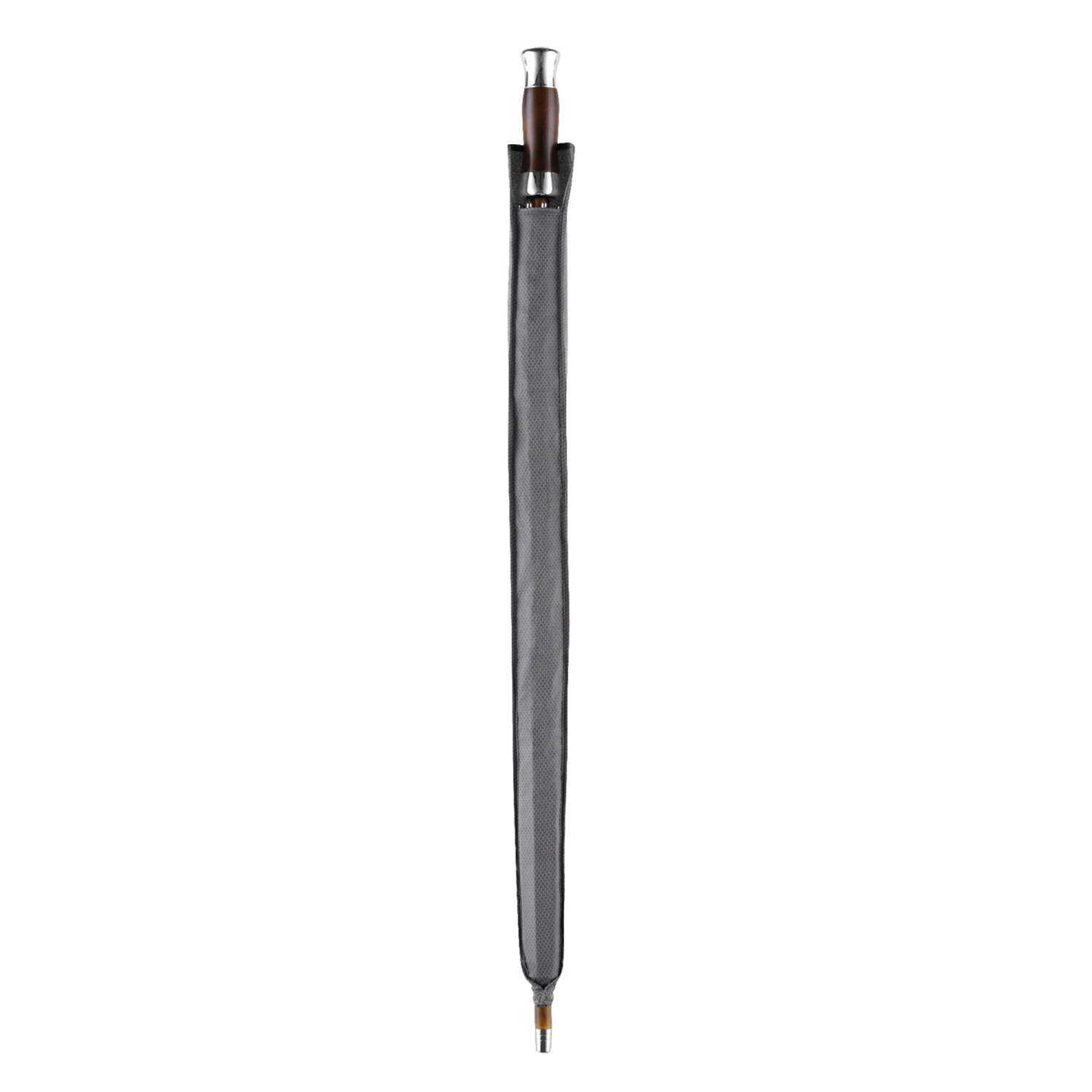 Hochwertiger Midsize-Schirm mit vielen Liebhaber-Details der klassischen Schirmmacherkunst und edlen glanzverchromten Elementen, Windproof-System, Handöffner, 65 cm/8-teilig, 16 mm Echtholzstock in geflammter Optik, Fiberglasschienen, gerader Griff in geflammtem Ahorn-Echtholz mit verchromten Applikationen und Doming-Möglichkeit, verchromte Schieber, Krone und Nickelspitzen, 71 % Polyester/29 % NylonFaconnéBezug mit Teflon behandelt (wasser- und schmutzabweisend), hochwertiges Futteral mit Paspelierung und breiter Öffnung.