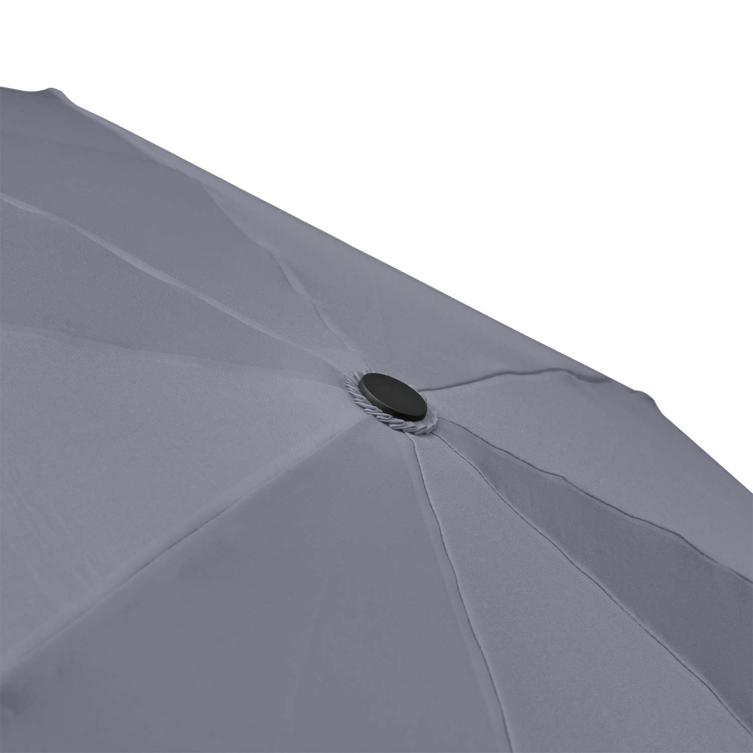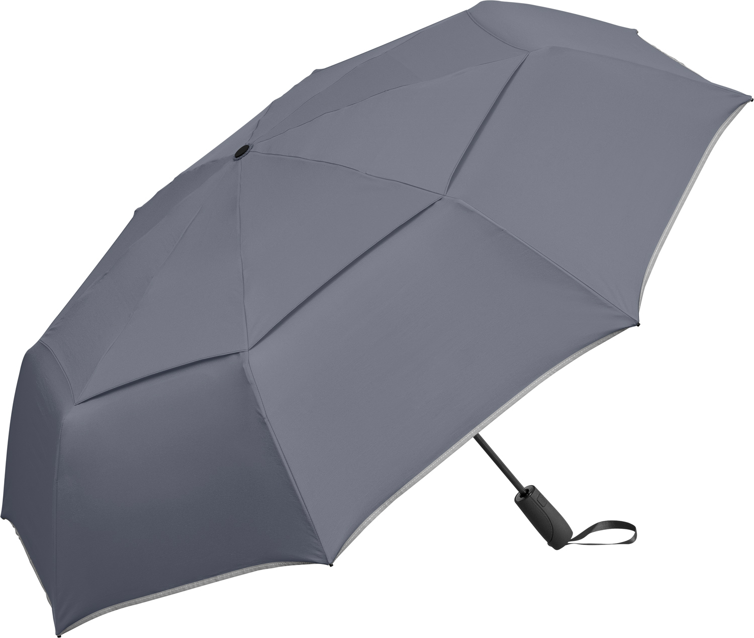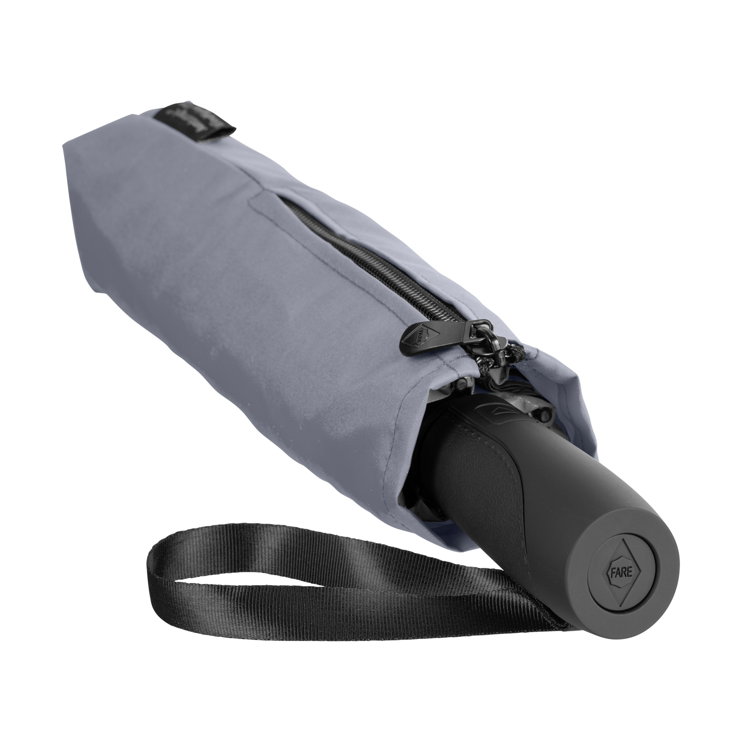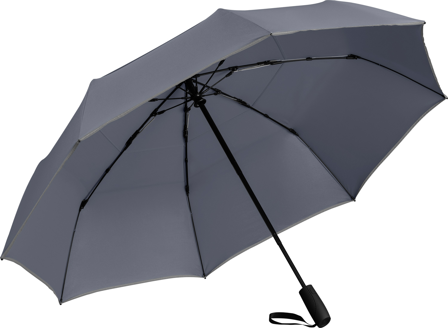Filigraner Handöffner-Taschenschirm in ultraleichter Ausführung. Einfache Handhabung durch Sicherheitsschieber, hochwertiges Windproof-PLUS-System für eine maximale Gestell-Flexibilität bei stärkeren Windböen, schwarzer Aluminiumstock, Polyester-Pongee Bezugsmaterial aus recycelten Kunststoffen, extra leichter Bezug, matt-schwarzer Kunststoffgriff mit Werbeanbringungsmöglichkeit, handtaschentauglich durch ultraleichtes Gewicht und kompakte Größe