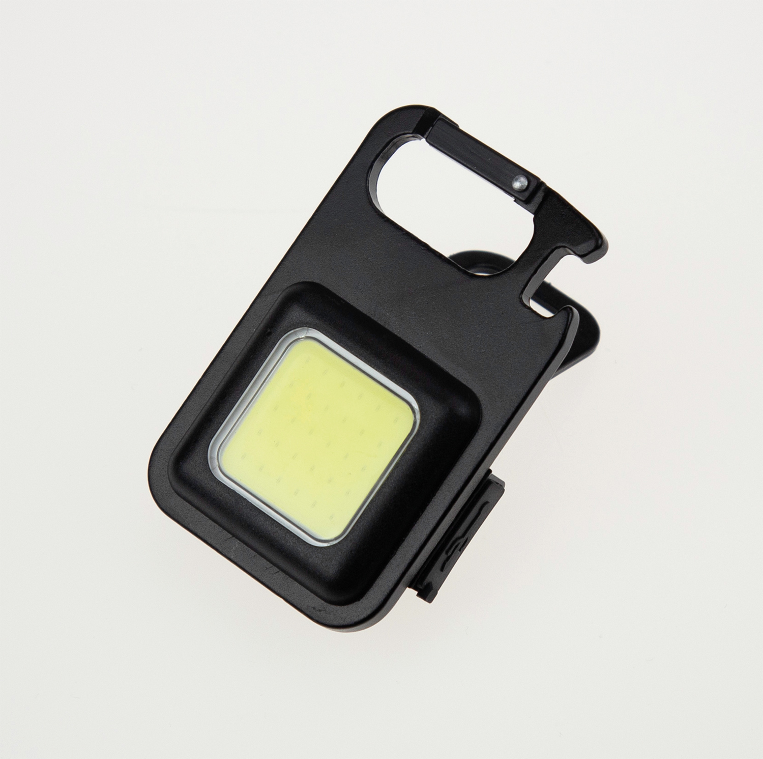 COB LED wiederaufladbar über Typ C, mit Magnet, Ständer, Karabiner, Kapselheber, Stativgewinde. 4 Leuchtmodi. Lieferung in braunem Einzelkarton.