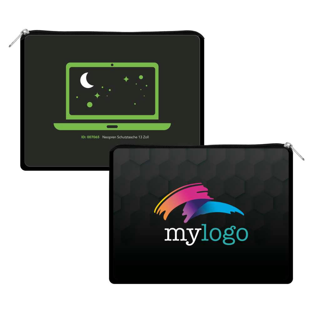 Tasche aus hochwertigem Neopren zum Schutz vor Kratzern, Stößen und Spritzwasser. Allover bedruckbar. Optional erhältlich: Tragegriffe, farbiger Reißverschluß, 3D/ Stoff- Zipper (gegen Aufpreis). Weitere Größen auf Anfrage