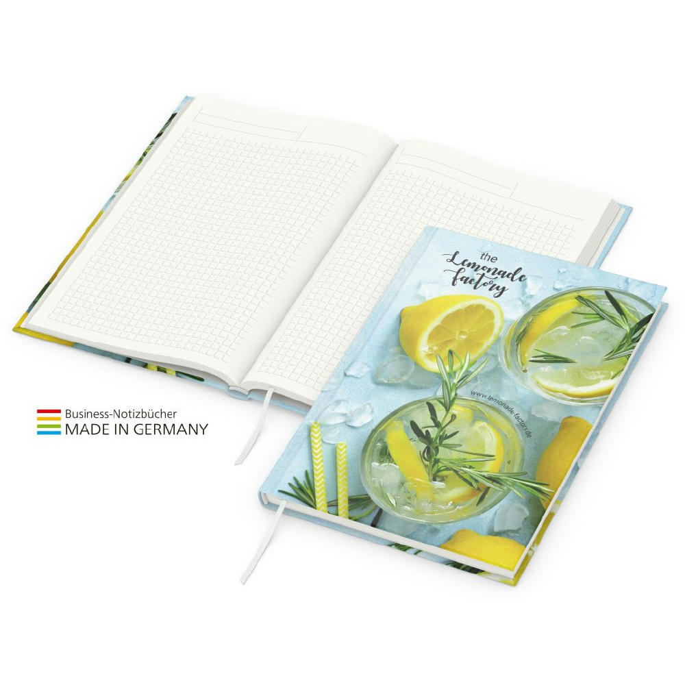 Klassisches Notizbuch mit Business-Ausstattung, mit dem man garantiert nichts falsch macht. Inhaltspapier aus Recyclingpapier mit dem Umweltzeichen "Blauen Engel".