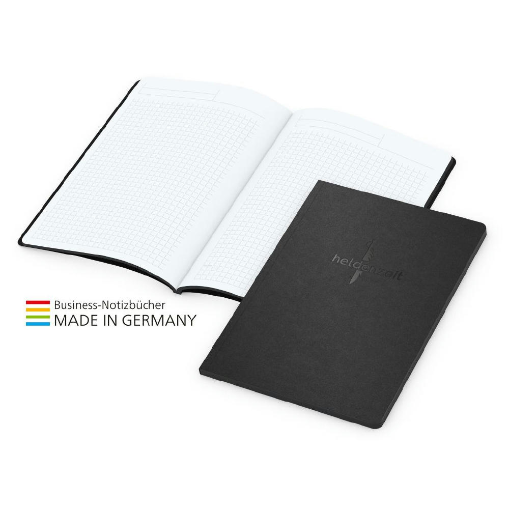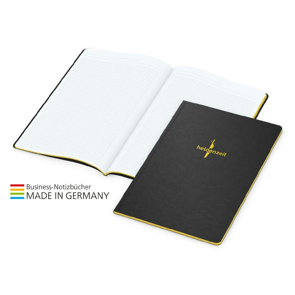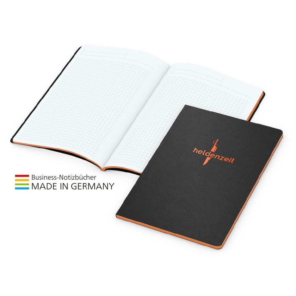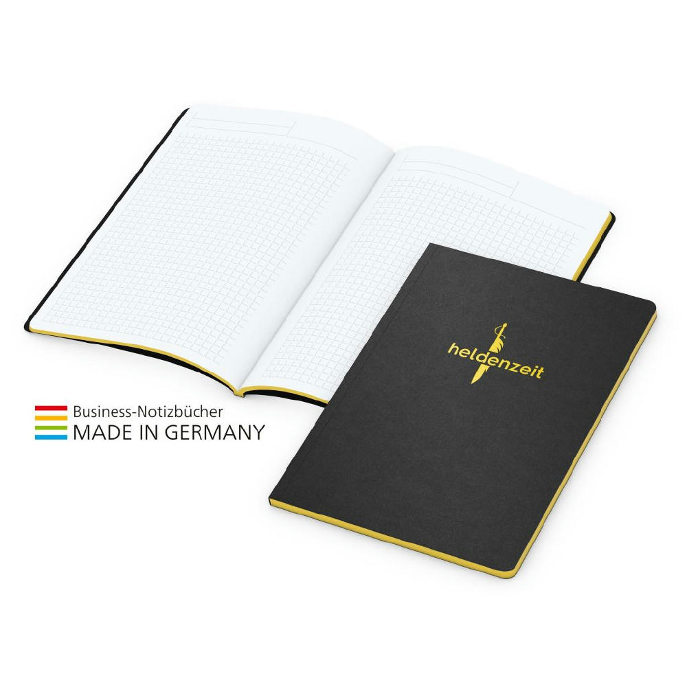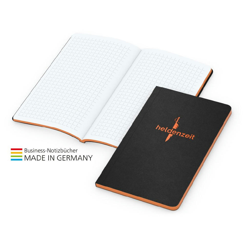 Design-Modell in moderner Broschurenform, inklusive Farbschnitt und farbiger Prägung.
